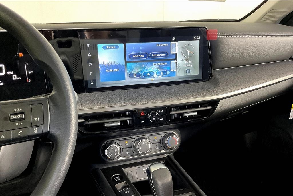 - Radio: AM/FM Audio System -inc: 12.3 color touchscreen display w/4 speakers, Bluetooth® hands-free phone system, streaming audio via Bluetooth®, audio and Bluetooth® steering wheel switches, USB C (data and charge) (front), NissanConnect featuring wireless Apple CarPlay, wireless Android Auto, Siri eyes free, SiriusXM satellite radio w/advanced auto features and hands-free text messaging assistant