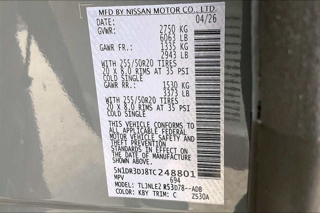 - Tires: P255/50R20 All-Season