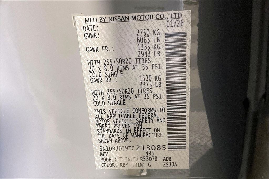 - Tires: P255/50R20 All-Season