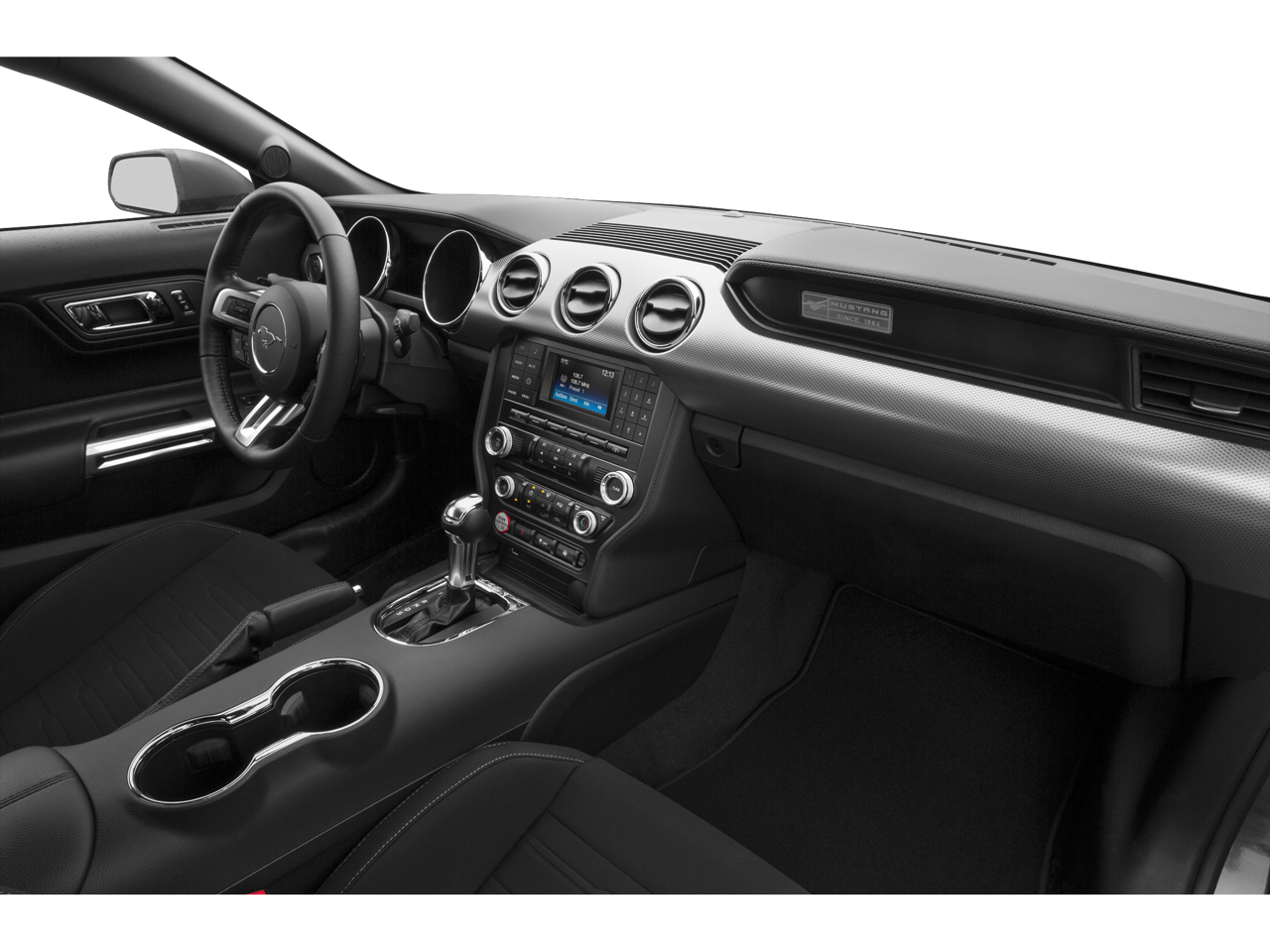 Inside, the Mustang EcoBoost Premium offers a refined and well-appointed cabin. The leather-wrapped steering wheel and shift knob, combined with the dual-zone automatic climate control, create a luxurious and comfortable environment. The 8-way power driver's seat and power passenger seat provide ample support and adjustability, ensuring a personalized fit for any driver.