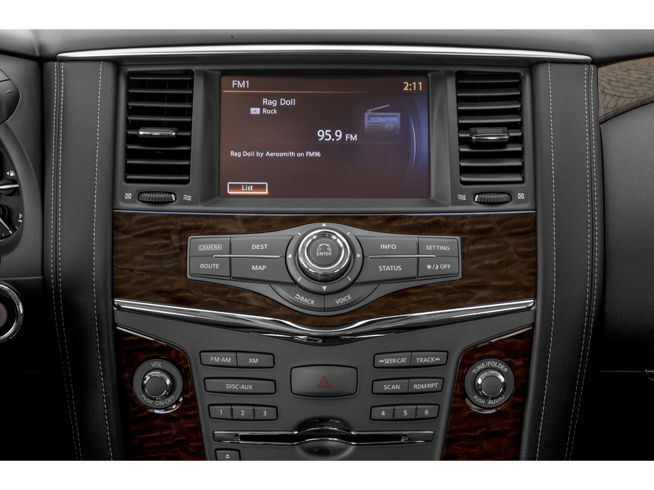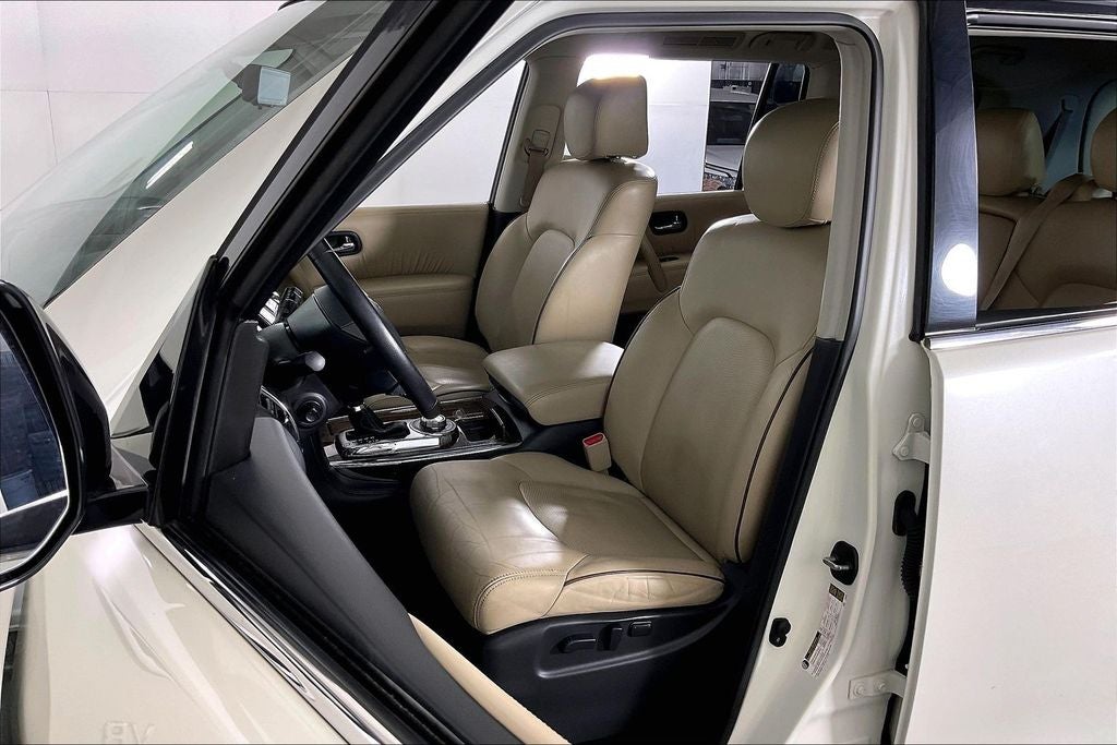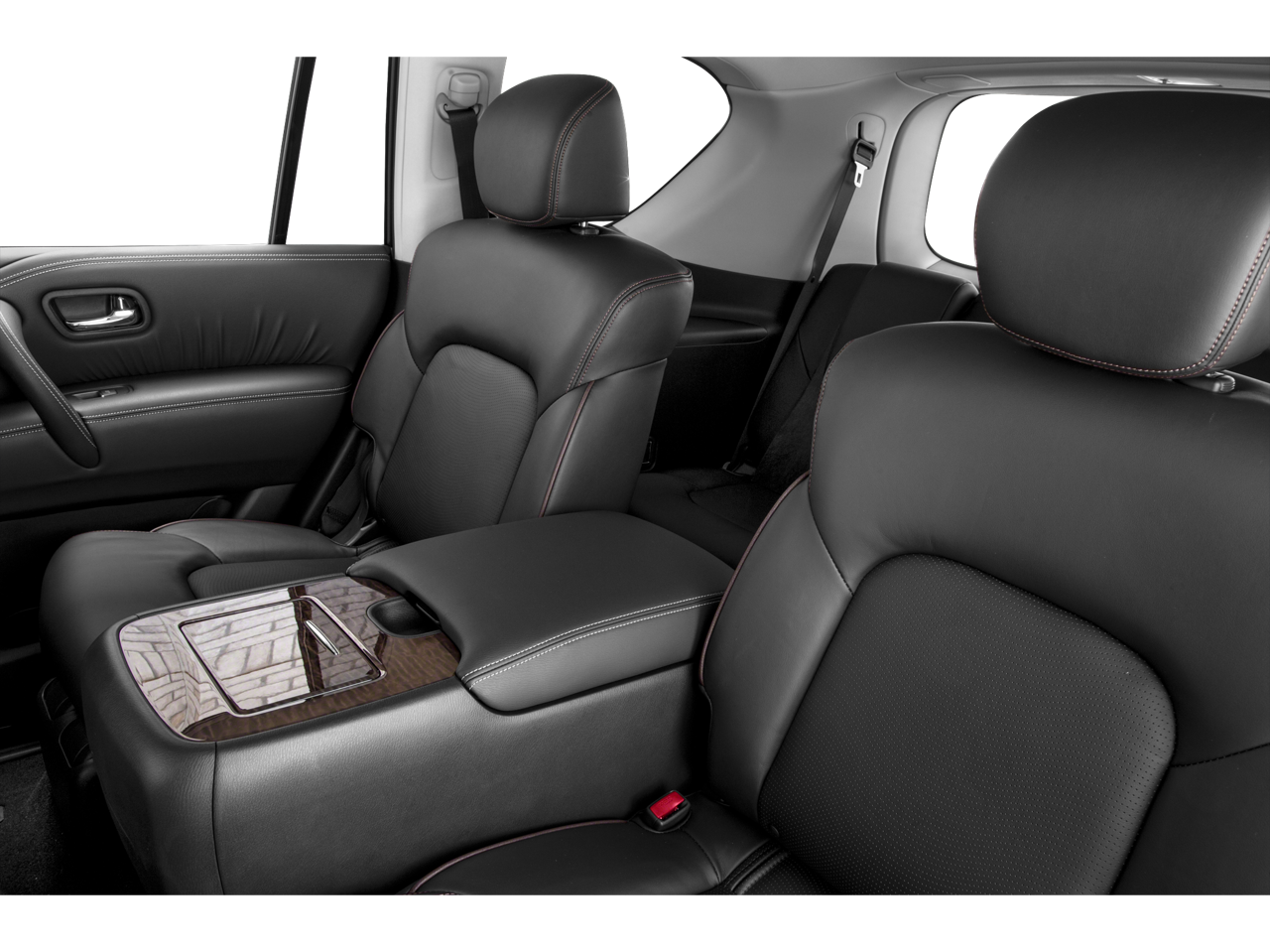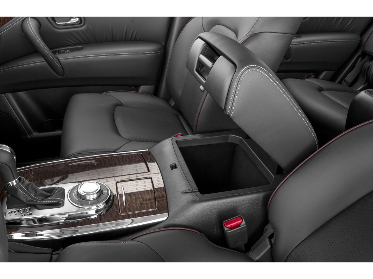 13 Speakers, 4-Wheel Disc Brakes, ABS brakes, Air Conditioning, AM/FM radio: SiriusXM, Auto-dimming door mirrors, Automatic temperature control, Brake assist, Bumpers: body-color, Electronic Stability Control, Front Bucket Seats, Fully automatic headlights, Panic alarm, Power driver seat, Power Liftgate, Power steering, Power windows, Rear window wiper, Security system, Traction control, Variably intermittent wipers, 2.937 Axle Ratio, 3rd row seats: split-bench, A/V remote, Alloy wheels, Anti-whiplash front head restraints, Auto tilt-away steering wheel, Auto-dimming Rear-View mirror, Auto-leveling suspension, CD player, Delay-off headlights, Driver door bin, Driver vanity mirror, Dual front impact airbags, Dual front side impact airbags, Emergency communication system: NissanConnect Services, Four wheel independent suspension, Front anti-roll bar, Front Center Armrest, Front dual zone A/C, Front fog lights, Front reading lights, Garage door transmitter: HomeLink, Headphones, Heated & Cooled Front Bucket Seats w/Driver Memory, Heated door mirrors, Heated front seats, Heated rear seats, Heated steering wheel, Illuminated entry, Leather Shift Knob, Leather-Appointed Seat Trim, Low tire pressure warning, Memory seat, Navigation System, Occupant sensing airbag, Outside temperature display, Overhead airbag, Overhead console, Passenger door bin, Passenger vanity mirror, Power door mirrors, Power moonroof, Power passenger seat, Radio data system, Radio: AM/FM/SXM/CD/MP3/HD, Rain sensing wipers, Rear air conditioning, Rear anti-roll bar, Rear reading lights, Rear seat center armrest, Rear window defroster, Reclining 3rd row seat, Remote keyless entry, Roof rack: rails only, Special Paint - Pearl White, Speed control, Speed-sensing steering, Speed-Sensitive Wipers, Split folding rear seat, Spoiler, Steering wheel memory, Steering wheel mounted audio controls, Tachometer, Telescoping steering wheel, Tilt steering wheel, Trip computer, Turn signal indicator mirrors, Ventilated front seats, Voltmeter, and Wheels: 20 Machine-Faced Chrome w/Tinted CC.