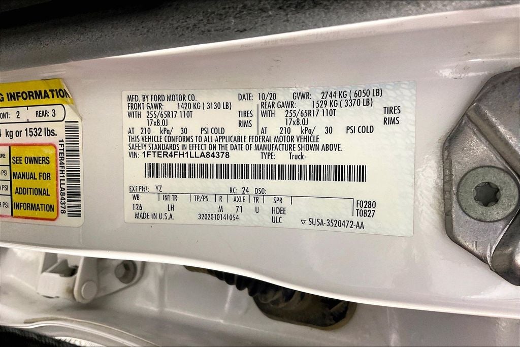 Equipment Group 300A Base, Trailer Tow Package, 4-Wheel Disc Brakes, 6 Speakers, ABS brakes, Air Conditioning, AM/FM radio: SiriusXM, Auto High-beam Headlights, Automatic temperature control, Brake assist, Electronic Stability Control, Exterior Parking Camera Rear, Front Bucket Seats, Low tire pressure warning, Panic alarm, Power steering, Power windows, Security system, Speed control, SYNC 3, Traction control, Variably intermittent wipers, 3.73 Axle Ratio, Alloy wheels, AM/FM Stereo, Bumpers: body-color, Compass, Delay-off headlights, Driver door bin, Dual front impact airbags, Dual front side impact airbags, Emergency communication system: SYNC 3 911 Assist, Front anti-roll bar, Front Center Armrest, Front dual zone A/C, Front fog lights, Front Premium Cloth Bucket Seats, Front reading lights, Front wheel independent suspension, Fully automatic headlights, Illuminated entry, Occupant sensing airbag, Outside temperature display, Overhead airbag, Overhead console, Passenger door bin, Power door mirrors, Rear reading lights, Rear seat center armrest, Rear step bumper, Rear window defroster, Remote keyless entry, SiriusXM Satellite Radio, Speed-sensing steering, Steering wheel mounted audio controls, Telescoping steering wheel, Tilt steering wheel, Trip computer, Voltmeter, and Wheels: 17 Silver-Painted Aluminum.