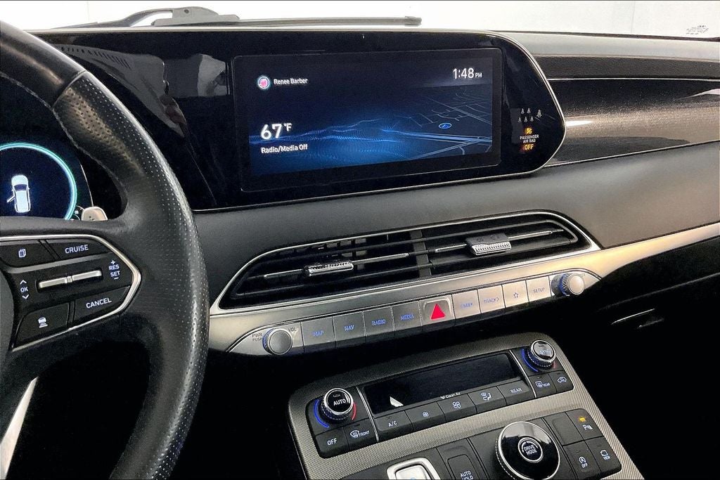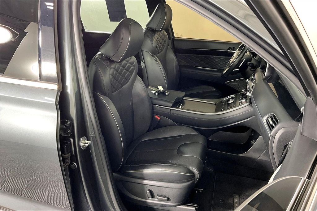 Option Group 01, 12 Speakers, 4-Wheel Disc Brakes, ABS brakes, Air Conditioning, Alloy wheels, AM/FM radio: SiriusXM, Apple CarPlay & Android Auto, Auto High-beam Headlights, Automatic temperature control, Brake assist, Delay-off headlights, Electronic Stability Control, Four wheel independent suspension, Front Bucket Seats, Front Center Armrest, Panic alarm, Power driver seat, Power steering, Power windows, Rain sensing wipers, Rear window wiper, Security system, Speed control, Speed-sensing steering, Tachometer, Traction control, Variably intermittent wipers, 3.648 Axle Ratio, 3rd row seats: split-bench, Auto-dimming Rear-View mirror, Bumpers: body-color, Cargo Cover/Screen, Cargo Tray, Carpeted Floor Mats, Compass, Driver door bin, Driver vanity mirror, Dual front impact airbags, Dual front side impact airbags, Emergency communication system: Blue Link Connected Car Service (3-year complimentary subscription), Front anti-roll bar, Front dual zone A/C, Front reading lights, Fully automatic headlights, Garage door transmitter: HomeLink, harman/kardon® Speakers, Heads-Up Display, Heated & Ventilated Front Bucket Seats, Heated door mirrors, Heated front seats, Heated rear seats, Heated steering wheel, Illuminated entry, Knee airbag, Low tire pressure warning, Memory seat, Navigation System, Occupant sensing airbag, Outside temperature display, Overhead airbag, Overhead console, Passenger door bin, Passenger vanity mirror, Power door mirrors, Power Liftgate, Power moonroof, Power passenger seat, Premium Nappa Leather Seat Trim, Radio data system, Radio: AM/FM/MP3 Premium Audio System, Rear air conditioning, Rear anti-roll bar, Rear reading lights, Rear window defroster, Reclining 3rd row seat, Remote keyless entry, Split folding rear seat, Spoiler, Steering wheel mounted audio controls, Telescoping steering wheel, Tilt steering wheel, Trip computer, Turn signal indicator mirrors, Ventilated front seats, Ventilated rear seats, Wheel Locks, and Wheels: 20 x 7.5J Calligraphy Exclusive Alloy.