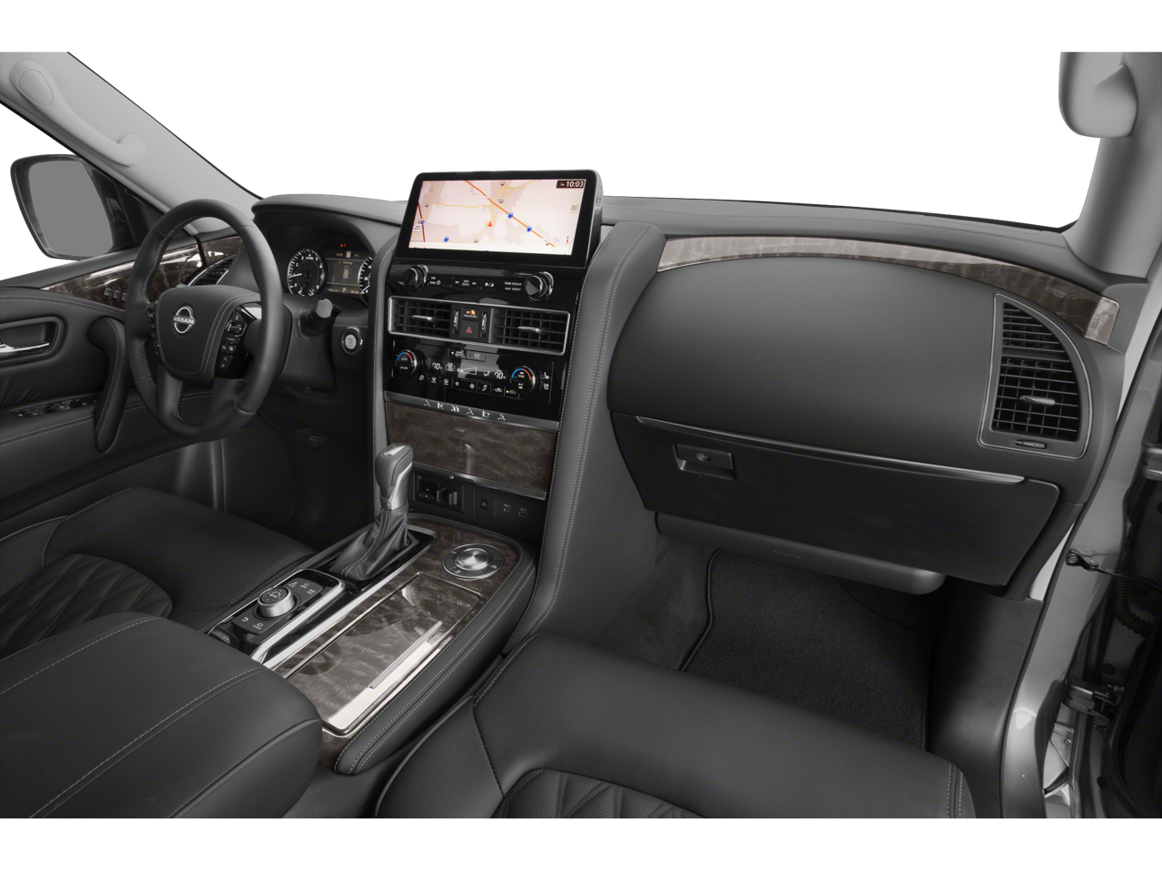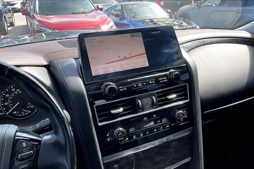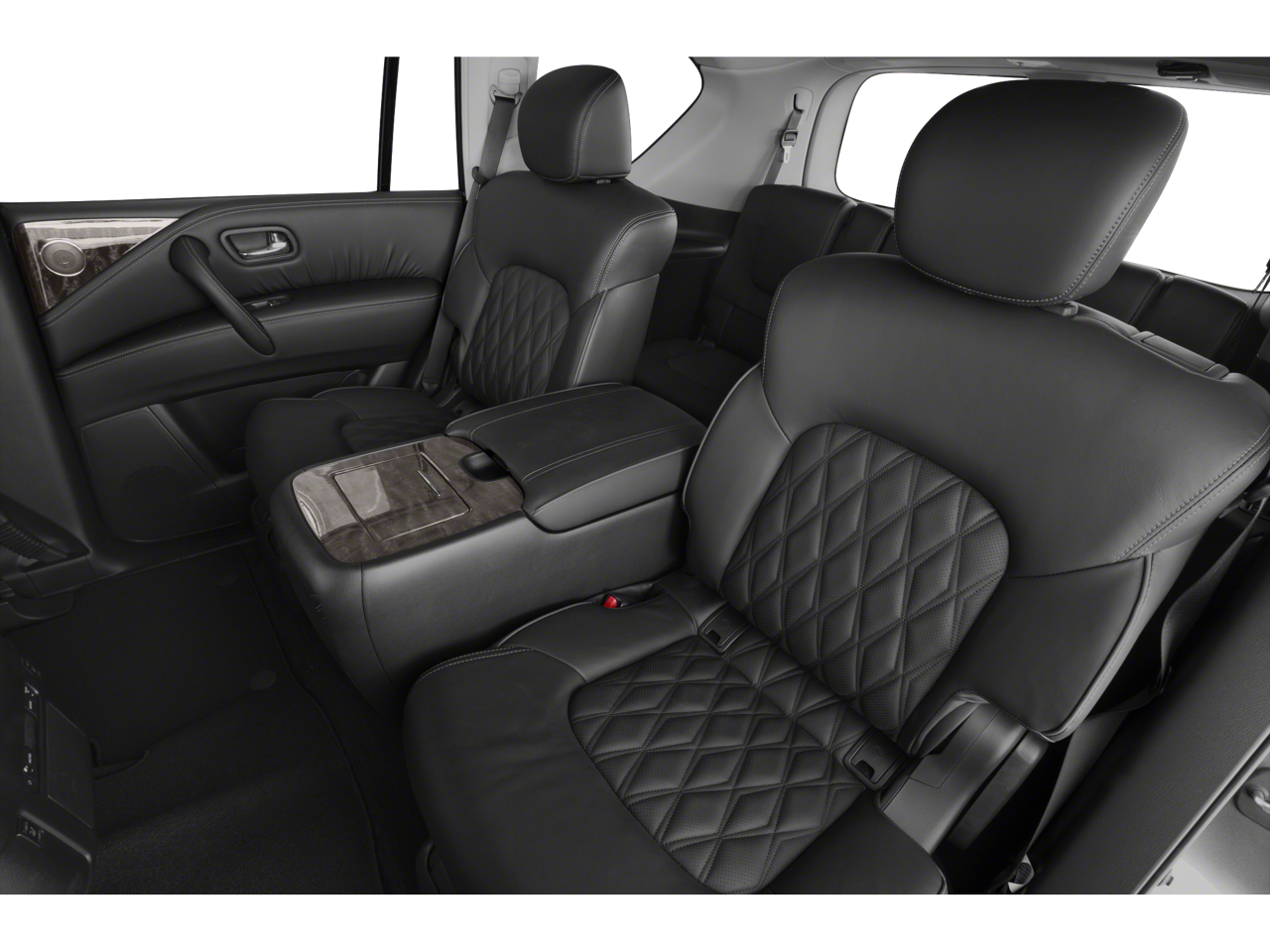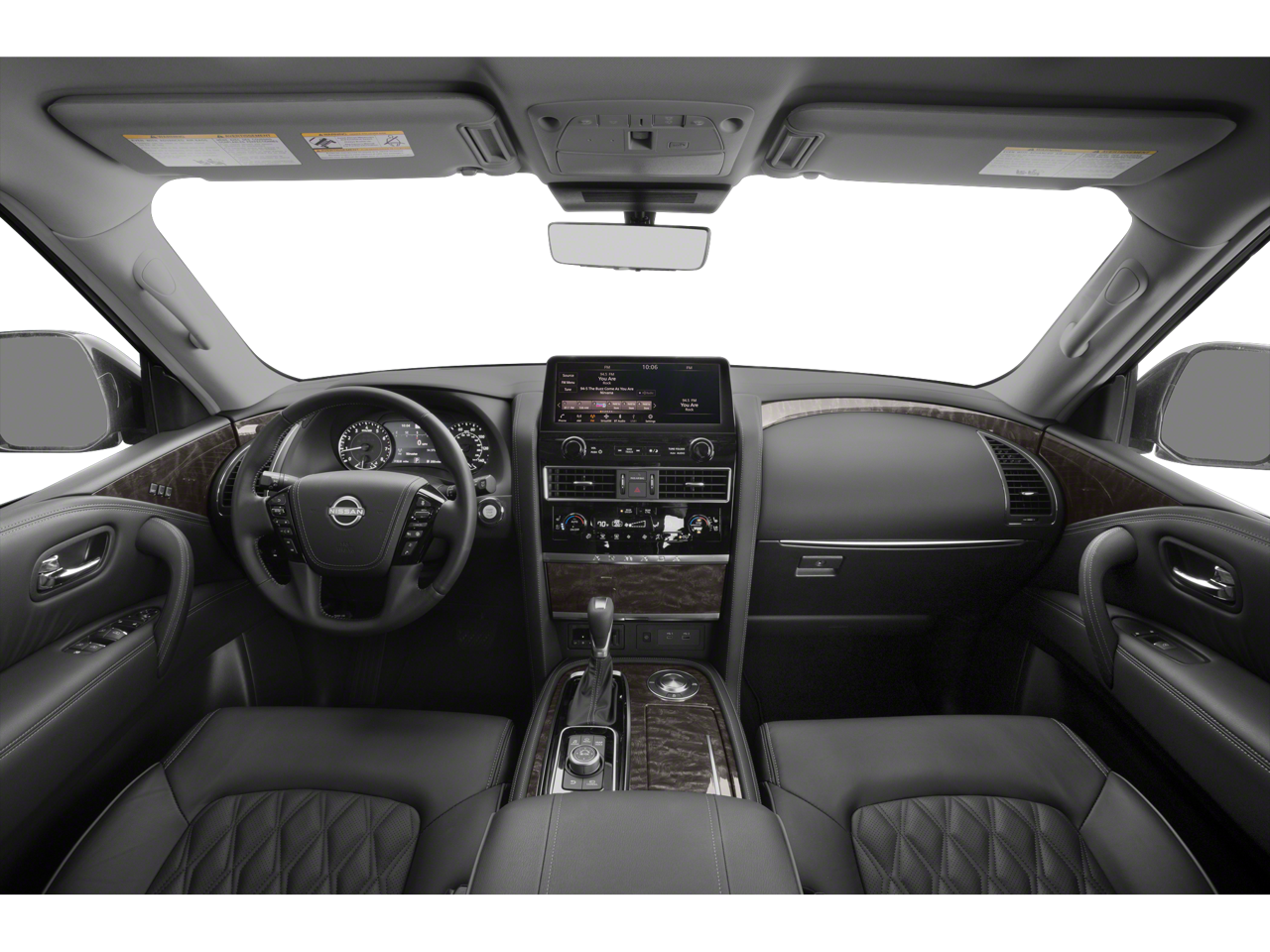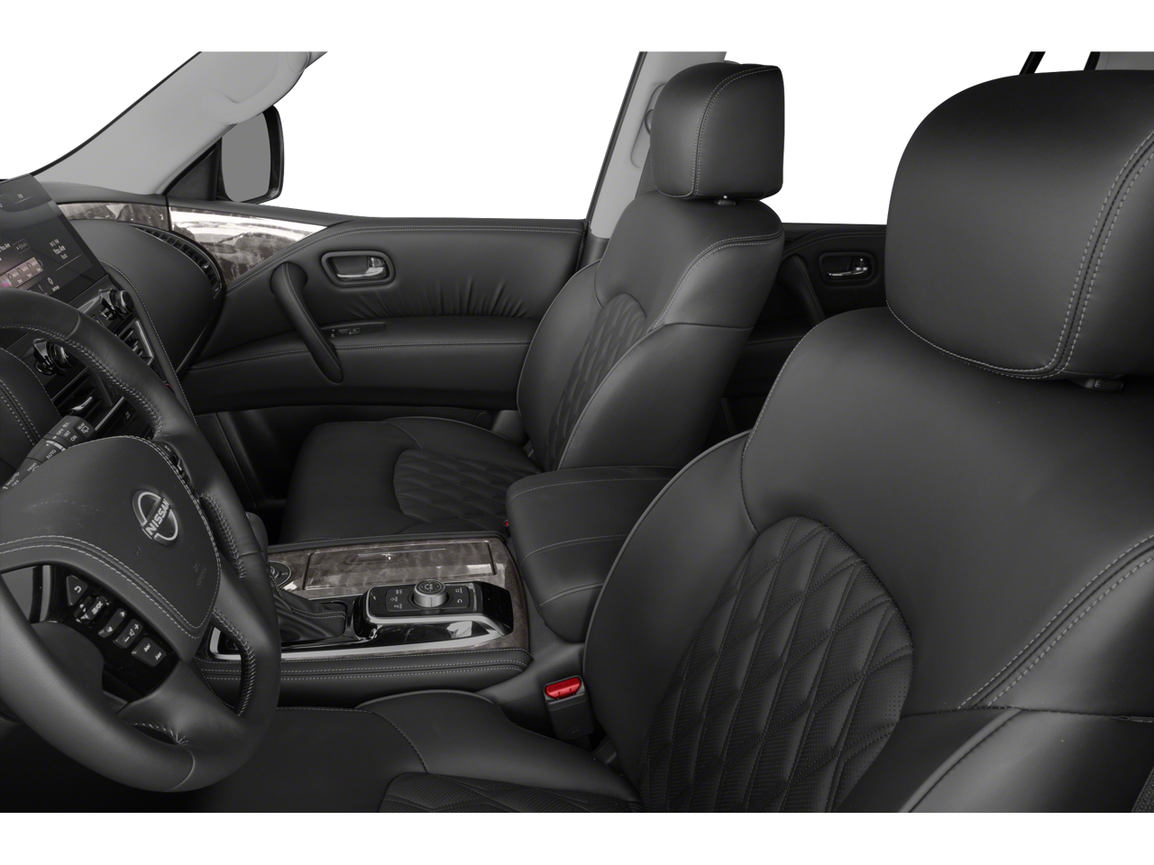 13 Speakers, 2.94 Axle Ratio, 3rd Row Carpeted Floor Mats - Bench Seat, 3rd row seats: split-bench, 4-Wheel Disc Brakes, A/V remote, ABS brakes, Air Conditioning, Alloy wheels, AM/FM radio: SiriusXM, Anti-whiplash front head restraints, Auto High-beam Headlights, Auto tilt-away steering wheel, Auto-dimming door mirrors, Auto-dimming Rear-View mirror, Auto-leveling suspension, Automatic temperature control, Brake assist, Bumpers: body-color, Climate-Controlled Front Bucket Seats, Delay-off headlights, Driver door bin, Driver vanity mirror, Dual front impact airbags, Dual front side impact airbags, Electronic Stability Control, Emergency communication system: NissanConnect Services, Exterior Parking Camera Rear, Four wheel independent suspension, Front anti-roll bar, Front Bucket Seats, Front Center Armrest, Front dual zone A/C, Front fog lights, Front reading lights, Fully automatic headlights, Garage door transmitter: HomeLink, Headphones, Heated door mirrors, Heated front seats, Heated rear seats, Heated steering wheel, Illuminated entry, Leather Shift Knob, Low tire pressure warning, Memory seat, Navigation System, NissanConnect featuring Apple CarPlay and Android Auto, Occupant sensing airbag, Outside temperature display, Overhead airbag, Overhead console, Panic alarm, Passenger door bin, Passenger vanity mirror, Power door mirrors, Power driver seat, Power Liftgate, Power moonroof, Power passenger seat, Power steering, Power windows, Quilted Leather Seat Trim, Radio: NissanConnect w/SiriusXM, Rain sensing wipers, Rear air conditioning, Rear anti-roll bar, Rear reading lights, Rear seat center armrest, Rear window defroster, Rear window wiper, Reclining 3rd row seat, Remote keyless entry, Security system, Speed control, Speed-sensing steering, Speed-Sensitive Wipers, Split folding rear seat, Spoiler, Steering wheel memory, Steering wheel mounted audio controls, Tachometer, Telescoping steering wheel, Tilt steering wheel, Traction control, Trip computer, Turn signal indicator mirrors, Variably intermittent wipers, Ventilated front seats, Voltmeter, and Wheels: 22 Machine-Faced w/Tinted Clear Coat.