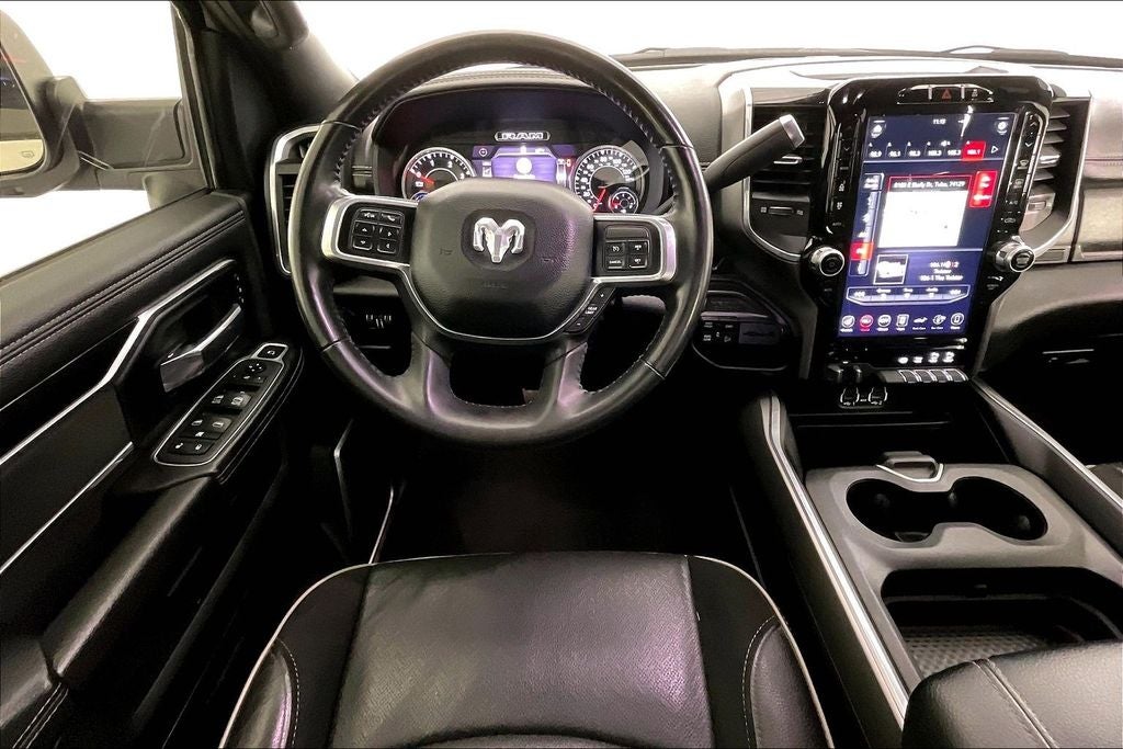 The Laramie trim level elevates this Ram 2500 with a wealth of premium features, including ventilated front seats, power adjustable pedals with memory, and a surround view camera system for enhanced visibility. The Night Edition package adds a bold, blacked-out aesthetic with 20-inch black painted aluminum wheels, black exterior accents, and unique badging.