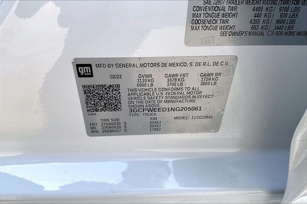 - Tires, 275/60R20 all-season, blackwall