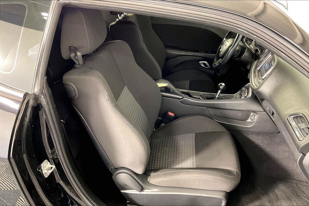 The interior of this Challenger R/T is equally impressive, with supportive Houndstooth Cloth Performance Seats, a leather-wrapped steering wheel, and a host of premium amenities. The dual-zone automatic climate control and power-adjustable driver's seat ensure your comfort, while the split-folding rear seat provides versatility for your cargo needs.