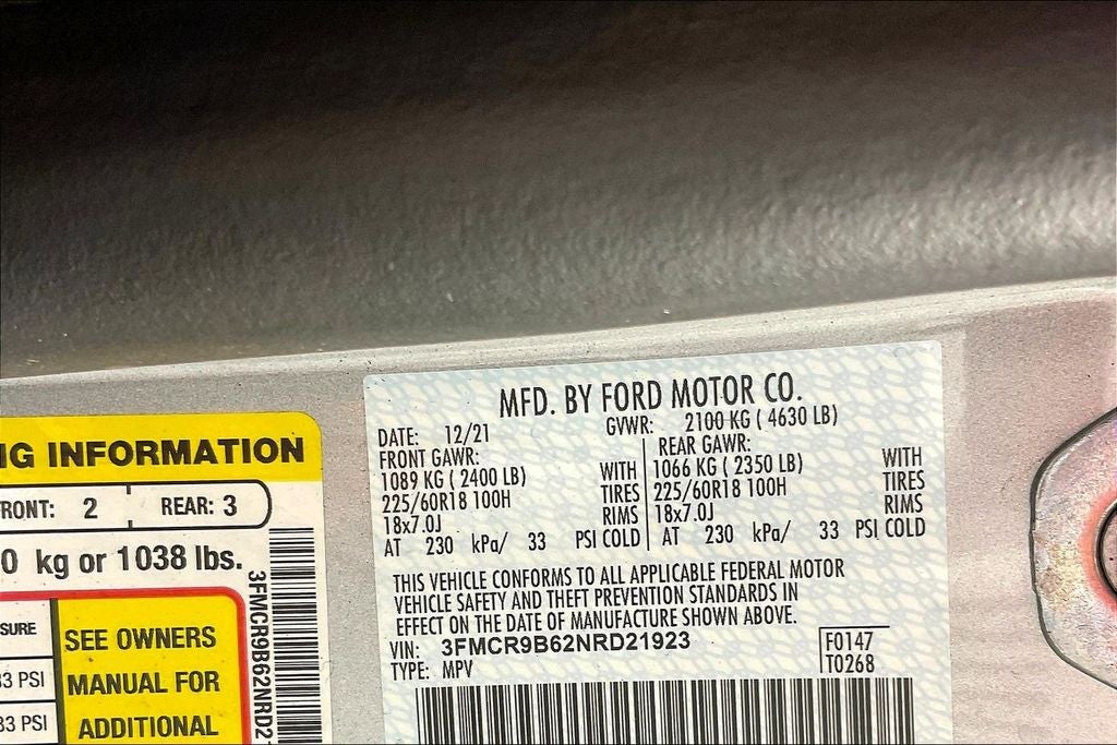 Class II Trailer Tow Package w/Trailer Sway Control, Convenience Package (Front Driver & Passenger Seatback Zipper Pockets, Heated Front Bucket Seats, Intelligent Access (Lock/Unlock), Leather-Wrapped Steering Wheel, LED Fog Lamps, Rear Parking Sensors, Universal Garage Door Opener (UGDO), and Wireless Charging Pad), Equipment Group 200A, 4-Wheel Disc Brakes, 6 Speakers, ABS brakes, Air Conditioning, AM/FM radio: SiriusXM, Auto High-beam Headlights, Automatic temperature control, Brake assist, Electronic Stability Control, Front Bucket Seats, Low tire pressure warning, Tachometer, 3.80 Axle Ratio, Alloy wheels, AM/FM Stereo, Compass, Delay-off headlights, Driver door bin, Driver vanity mirror, Dual front impact airbags, Dual front side impact airbags, Emergency communication system: SYNC 3 911 Assist, Four wheel independent suspension, Front & Rear Mudflaps Kit (DIO), Front anti-roll bar, Front Center Armrest, Front reading lights, Fully automatic headlights, Heated door mirrors, Illuminated entry, Knee airbag, Liftgate Privacy Curtain (DIO), Occupant sensing airbag, Outside temperature display, Overhead airbag, Overhead console, Panic alarm, Passenger door bin, Passenger vanity mirror, Power door mirrors, Power steering, Power windows, Radio data system, Rear anti-roll bar, Rear reading lights, Rear seat center armrest, Rear window defroster, Rear window wiper, Remote keyless entry, Roof rack: rails only, Roof-Rail Crossbars I (DIO), Security system, SiriusXM Radio, Speed control, Speed-sensing steering, Speed-Sensitive Wipers, Split folding rear seat, Steering wheel mounted audio controls, SYNC 3 Communications & Entertainment System, SYNC 3/Apple CarPlay/Android Auto, Telescoping steering wheel, Tilt steering wheel, Traction control, Trip computer, Unique Cloth Front Bucket Seats, Variably intermittent wipers, Wheels: 17 Carbonized Gray-Painted Aluminum, and Wheels: 18 Ebony Black-Painted Aluminum.