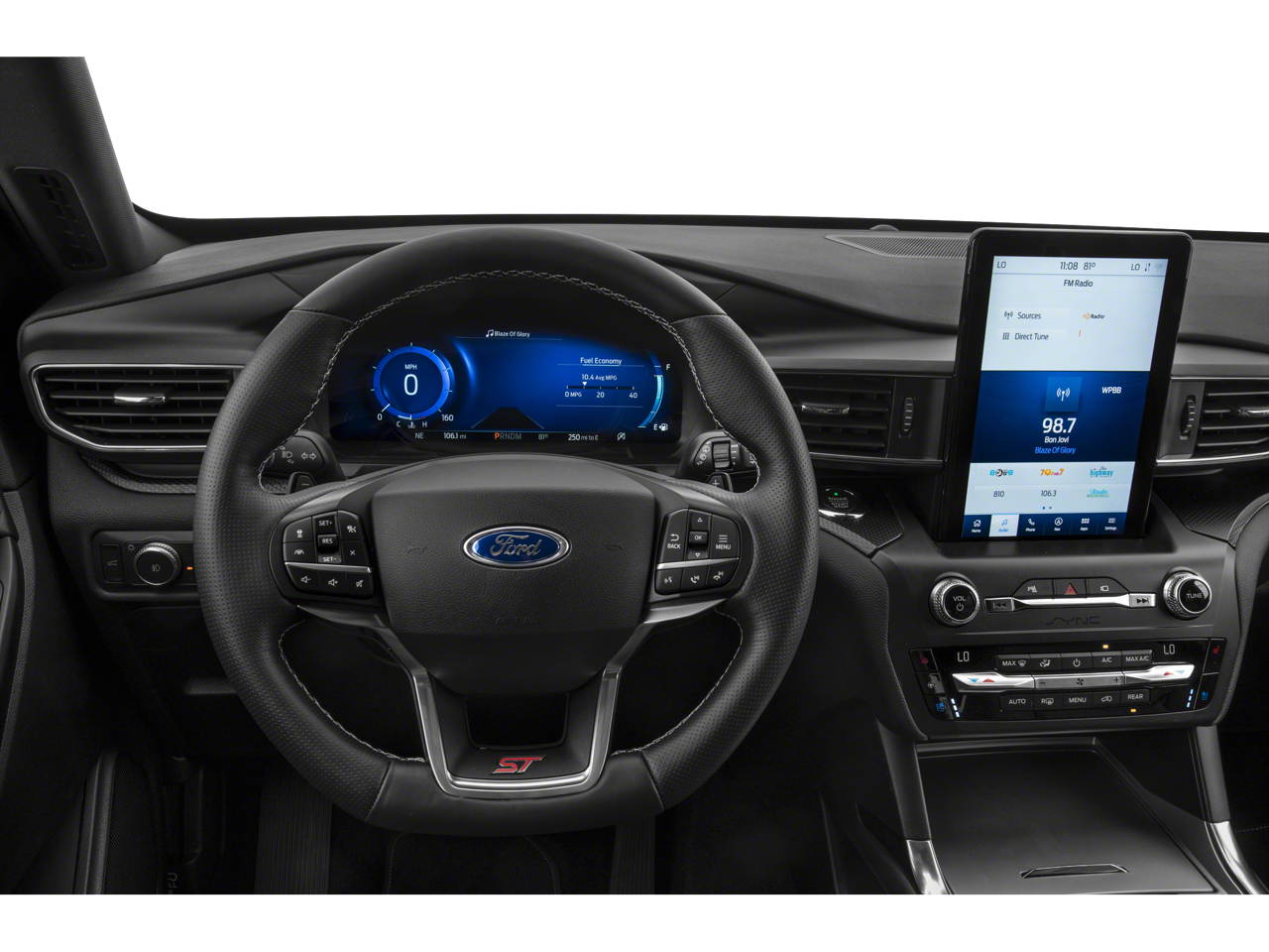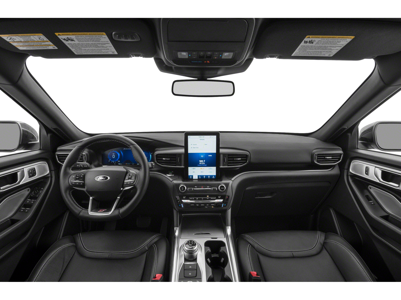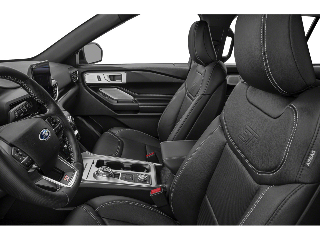 Equipment Group 401A, Ford Co-Pilot360 Assist+ (Evasive Steering Assist, Intelligent Adaptive Cruise Control, Speed Sign Recognition, and Voice-Activated Touchscreen Navigation System), ST High Package (110V/150W AC Power Outlet, 360-Degree Camera w/Split View, Auto-Dimming Rearview Mirror (Interior), FordPass Connect, Front Parking Sensors, Front Rain-Sensing Wipers, Hands-Free Foot-Activated Liftgate, Memory Driver's Seat, Power Tilt/Telescoping Steering Column, Radio: B&O Sound System by Bang & Olufsen, Reverse Brake Assist, Second Row Heated Seats, Sideview Mirrors w/Gloss Black Caps, SYNC 3 Communications & Entertainment System, Third Row PowerFold (Folds Flat), Universal Garage Door Opener (UGDO), and Wireless Charging Pad), ST Street Pack (Performance Front & Rear Brakes and Wheels: 21 Aluminum), Technology Package (10.1 LCD Capacitive Portrait Touchscreen and 2 Additional Speakers), 1st Row Heated Seats, 20 Machined Aluminum w/Painted Pockets Wheels, 3.58 Non-Limited-Slip Rear Axle Ratio, 3rd row seats: bench, 4-Wheel Disc Brakes, 4G LTE Wi-Fi Hotspot Removal Credit, 6 Speakers, ABS brakes, Air Conditioning, Alloy wheels, AM/FM radio: SiriusXM, AM/FM Stereo, Auto High-beam Headlights, Automatic temperature control, Black Roof-Rack Side Rails, Brake assist, Bumpers: body-color, Compass, Delay-off headlights, Driver door bin, Driver vanity mirror, Dual front impact airbags, Dual front side impact airbags, Electronic Stability Control, Emergency communication system: SYNC 3 911 Assist, Exterior Parking Camera Rear, Four wheel independent suspension, Front anti-roll bar, Front Bucket Seats, Front Center Armrest, Front dual zone A/C, Front fog lights, Front reading lights, Fully automatic headlights, Hands-Free Liftgate Delete, Heated door mirrors, Heated front seats, Heated steering wheel, Illuminated entry, Knee airbag, Leather steering wheel, Low tire pressure warning, Memory seat, Occupant sensing airbag, Outside temperature display, Overhead airbag, Overhead console, Panic alarm, Passenger door bin, Passenger vanity mirror, Power door mirrors, Power driver seat, Power Liftgate, Power passenger seat, Power steering, Power windows, Rear air conditioning, Rear anti-roll bar, Rear Auxiliary Controls Credit, Rear reading lights, Rear window defroster, Rear window wiper, Remote keyless entry, Security system, SelectShift Capability w/Paddle Shifters, Speed control, Speed-sensing steering, Speed-Sensitive Wipers, Split folding rear seat, Spoiler, Sport steering wheel, Steering wheel mounted audio controls, SYNC 3/Apple CarPlay/Android Auto, Tachometer, Telescoping steering wheel, Tilt steering wheel, Traction control, Trip computer, Twin Panel Moonroof, Variably intermittent wipers, and Ventilated front seats.