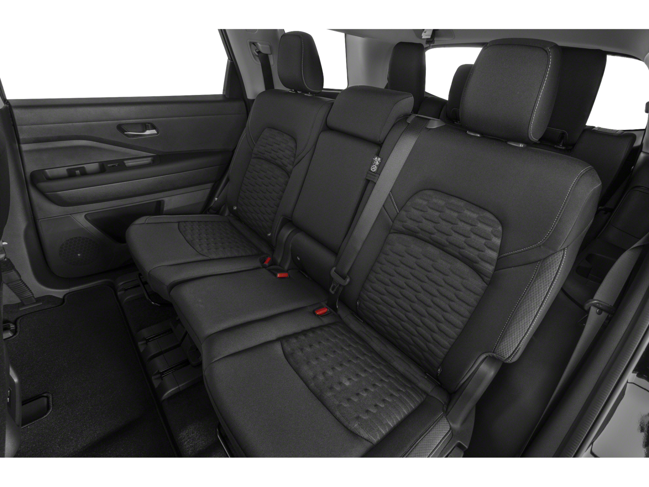 18 Painted Alloy Wheels, 3rd row seats: bench, 4-Wheel Disc Brakes, 6 Speakers, ABS brakes, Air Conditioning, Alloy wheels, AM/FM radio: SiriusXM, Auto High-beam Headlights, Automatic temperature control, Axle Ratio: TBD, Bench Seat Carpeted Floor Mats (Set of 4), Blind Spot Warning, Brake assist, Bumpers: body-color, Cloth Seating Surfaces, Delay-off headlights, Driver door bin, Driver vanity mirror, Dual front impact airbags, Dual front side impact airbags, Electronic Stability Control, Four wheel independent suspension, Front anti-roll bar, Front Bucket Seats, Front Center Armrest, Front dual zone A/C, Front reading lights, Fully automatic headlights, Illuminated entry, Knee airbag, Low tire pressure warning, NissanConnect featuring Apple CarPlay and Android Auto, Occupant sensing airbag, Outside temperature display, Overhead airbag, Overhead console, Panic alarm, Passenger door bin, Passenger vanity mirror, Power door mirrors, Power steering, Power windows, Radio data system, Radio: AM/FM Audio System w/NissanConnect, Rear air conditioning, Rear anti-roll bar, Rear Parking Sensors, Rear reading lights, Rear seat center armrest, Rear side impact airbag, Rear window defroster, Rear window wiper, Reclining 3rd row seat, Remote keyless entry, Security system, Speed control, Speed-sensing steering, Split folding rear seat, Spoiler, Steering wheel mounted audio controls, Tachometer, Telescoping steering wheel, Tilt steering wheel, Traction control, Trip computer, Turn signal indicator mirrors, and Variably intermittent wipers.