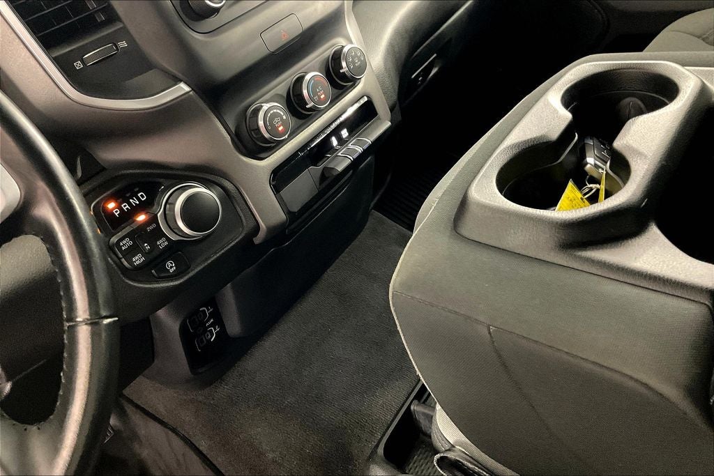 Quick Order Package 23Z Big Horn (Big Horn Badge), 4-Wheel Disc Brakes, 6 Speakers, ABS brakes, Air Conditioning, Brake assist, Electronic Stability Control, Leather steering wheel, Low tire pressure warning, Power steering, Power windows, Remote keyless entry, Tachometer, Traction control, 3 Rear Seat Head Restraints, 3.21 Rear Axle Ratio, 4 Way Front Headrests, 48V Belt Starter Generator, Alloy wheels, Bumpers: chrome, Cloth Bench Seat, Compass, Delay-off headlights, Driver door bin, Dual front impact airbags, Dual front side impact airbags, Emergency communication system: SiriusXM Guardian, Front anti-roll bar, Front Center Armrest w/Storage, Front fog lights, Front License Plate Bracket, Front reading lights, Front Seat Back Map Pockets, Front wheel independent suspension, Fully automatic headlights, Heated door mirrors, Heavy-Duty Engine Cooling, Illuminated entry, Integrated Voice Command w/Bluetooth®, MOPAR Front & Rear Rubber Floor Mats, Occupant sensing airbag, Outside temperature display, Overhead airbag, Overhead console, Panic alarm, ParkView Rear Back-Up Camera, Passenger door bin, Passenger vanity mirror, Power door mirrors, Rear 60/40 Folding Seat, Rear anti-roll bar, Rear seat center armrest, Rear step bumper, Remote Start System, Speed control, Split folding rear seat, Steering wheel mounted audio controls, Telescoping steering wheel, Tilt steering wheel, Trip computer, Variably intermittent wipers, Voltmeter, Wheels: 18 x 8 Cast-Aluminum Painted, and Wheels: 20 x 9 Aluminum Chrome Clad (WRK)