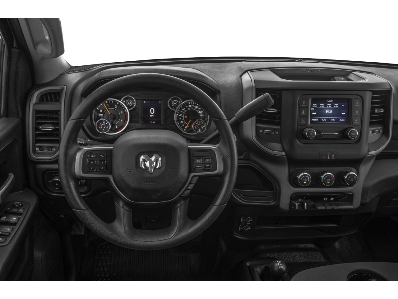 Chrome Appearance Group (Bright Front Bumper, Bright Rear Bumper, Center Hub, Chrome Grille Surround, Matte Black Mesh Grille w/Chrome, and Wheels: 18 x 8.0 Steel Chrome Clad), Heavy Duty Snow Plow Prep Group (220 Amp Alternator), Protection Group, Quick Order Package 2HA Tradesman, Tradesman Level 2 Equipment Group (Rear Window Defroster, 2 Way Rear Headrest Seat, 4 Way Front Headrests, 40/20/40 Split Bench Seat, Carpet Floor Covering, Cloth 40/20/40 Bench Seat, Front Armrest w/Cupholders, Manual Adjust 4-Way Driver Seat, Manual Adjust 4-Way Front Passenger Seat, Rear Folding Seat, Rear Power Sliding Window, SiriusXM Satellite Radio, and Storage Tray), 4-Wheel Disc Brakes, 6 Speakers, ABS brakes, Air Conditioning, AM/FM radio, Brake assist, Delay-off headlights, Electronic Stability Control, Low tire pressure warning, ParkView Rear Back-Up Camera, Power steering, Power windows, Variably intermittent wipers, 17 x 7.5 Steel Styled Wheels, 3.73 Axle Ratio, 4G LTE Wi-Fi Hot Spot, 8.4 Touchscreen Display, Active Noise Control System, All R1 Low Radios, All Radio Equipped Vehicles, Anti-Spin Differential Rear Axle, Apple CarPlay, Black Exterior Mirrors, Blind Spot & Cross Path Detection, Bluetooth® Handsfree Phone & Audio, Clearance Lamps, Cluster 3.5 TFT Color Display, Cluster 7.0 TFT Color Display, Compass, Connectivity - US/Canada, Dash Pass Thru Wire Circuits, Driver door bin, Dual front impact airbags, Dual front side impact airbags, Electric Shift-On-The-Fly Transfer Case, Electronically Controlled Throttle, Emergency communication system: SiriusXM Guardian, Exterior Mirrors Courtesy Lamps, Exterior Mirrors w/Heating Element, Exterior Mirrors w/Supplemental Signals, For Details, Visit DriveUconnect.com, Front anti-roll bar, Front Center Armrest w/Storage, Front License Plate Bracket, Front reading lights, Fully automatic headlights, Global Telematics Box Module (TBM), Google Android Auto, GPS Antenna Input, Heated door mirrors, Heavy Duty Vinyl 40/20/40 Split Bench Seat, I/P Mounted Auxiliary Switches, Illuminated entry, Integrated Center Stack Radio, Integrated Voice Command w/Bluetooth®, LED Tail Lamps, Manufacturer's Statement of Origin, Mirror Running Lights, MOPAR Front & Rear Rubber Floor Mats, Occupant sensing airbag, Outside temperature display, Overhead airbag, Overhead console, Passenger door bin, Passenger vanity mirror, Power Adjust/Fold & Heated Black Tow Mirrors, Power door mirrors, Power Folding Mirrors, Radio data system, Radio: Uconnect 3 w/5 Display, Radio: Uconnect 5 W w/8.4 Display, Rear anti-roll bar, Rear step bumper, Selectable Tire Fill Alert, SiriusXM Radio Service, Speed control, Tachometer, Tilt steering wheel, Tip Start,