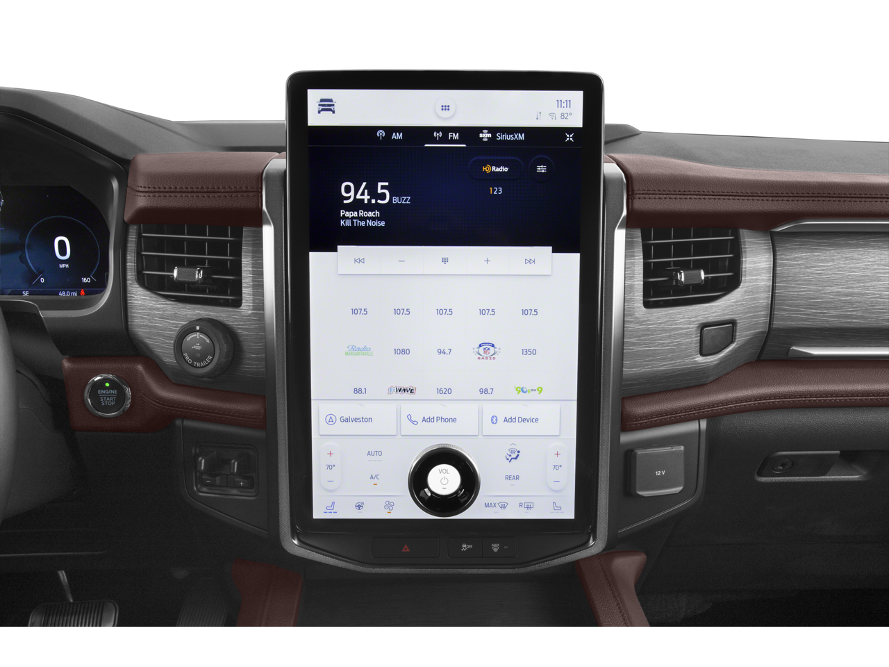 Equipment Group 302A High Package (Ebony Black Mesh Grille, Heavy-Duty Independent Suspension, Magnetic-Painted Power Deployable Running Boards, Power-Folding Sideview Mirrors w/Autofold, and Wheels: 22 12-Spoke Polished Aluminum), Heavy-Duty Trailer Tow Package (26mm Engine Radiator, 360-Degree Camera w/Trailer Reverse Guidance, Integrated Trailer Brake Controller, and Pro Trailer Backup Assist), 12 Speakers, 360-Degree Camera w/Split View, 3rd row seats: split-bench, 4-Wheel Disc Brakes, ABS brakes, Adjustable pedals, Air Conditioning, Alloy wheels, AM/FM radio: SiriusXM with 360L, Auto High-beam Headlights, Auto Start-Stop Removal (DISC), Auto-dimming door mirrors, Auto-dimming Rear-View mirror, Automatic temperature control, Brake assist, Bumpers: body-color, Compass, Connected Built-In Navigation, Delay-off headlights, Driver door bin, Driver vanity mirror, Dual front impact airbags, Dual front side impact airbags, Electronic Stability Control, Emergency communication system: SYNC 4 911 Assist, Exterior Parking Camera Rear, Four wheel independent suspension, Front anti-roll bar, Front Bucket Seats, Front Center Armrest, Front dual zone A/C, Front fog lights, Front reading lights, Fully automatic headlights, Garage door transmitter, Heated & Ventilated Leather Front Captain's Chairs, Heated door mirrors, Heated front seats, Heated rear seats, Heated steering wheel, Illuminated entry, Leather steering wheel, Low tire pressure warning, Memory seat, Navigation system: Connected Navigation, Occupant sensing airbag, Outside temperature display, Overhead airbag, Overhead console, Panic alarm, Passenger door bin, Passenger vanity mirror, Pedal memory, Power door mirrors, Power driver seat, Power Liftgate, Power moonroof, Power passenger seat, Power steering, Power windows, Radio data system, Radio: B&O Sound System by Bang & Olufsen, Rain sensing wipers, Rear air conditioning, Rear anti-roll bar, Rear reading lights, Rear window defroster, Rear window wiper, Reclining 3rd row seat, Remote keyless entry, Reverse Brake Assist, Second Row Power Windows Removal, Security system, SiriusXM w/360L, Speed control, Speed-sensing steering, Speed-Sensitive Wipers, Split folding rear seat, Spoiler, Steering wheel memory, Steering wheel mounted audio controls, SYNC 4 w/Enhanced Voice Recognition, Tachometer, Telescoping steering wheel, Tilt steering wheel, Traction control, Trip computer, Turn signal indicator mirrors, Variably intermittent wipers, Ventilated front seats, Voltmeter, and Wheels: 20 Bright Machined Aluminum.