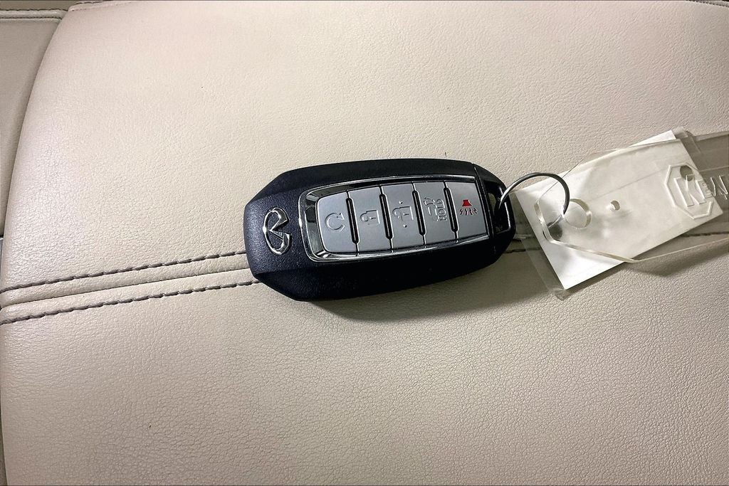 Cargo Package (First Aid Kit and Cargo Mat (Reversible)), Vision Package (10.8 Head-Up Display, Adaptive Front Lighting System, and Smart Rear View Mirror), 17 Speakers, 4-Wheel Disc Brakes, ABS brakes, Air Conditioning, Alloy wheels, AM/FM radio: SiriusXM, Auto High-beam Headlights, Automatic temperature control, Brake assist, Delay-off headlights, Electronic Stability Control, Four wheel independent suspension, Front Bucket Seats, Heated front seats, Leather-Appointed Seating Surfaces, Low tire pressure warning, Panic alarm, Power Liftgate, Power steering, Power windows, Radio data system, Rear anti-roll bar, Rear side impact airbag, Remote keyless entry, Speed control, Speed-sensing steering, Speed-Sensitive Wipers, Tachometer, Variably intermittent wipers, 3rd row seats: bench, 4.334 Axle Ratio, Anti-whiplash front head restraints, Auto-dimming door mirrors, Auto-dimming Rear-View mirror, Bumpers: body-color, Climate-Controlled Front Bucket Seats, Driver door bin, Driver vanity mirror, Dual front impact airbags, Dual front side impact airbags, Emergency communication system, Floor Mats on Bench Seats w/3rd Row Tray, Front anti-roll bar, Front Center Armrest, Front dual zone A/C, Front reading lights, Fully automatic headlights, Garage door transmitter: HomeLink, Heated door mirrors, Heated rear seats, Heated steering wheel, Illuminated entry, Illuminated Kick Plate, Knee airbag, Leather Shift Knob, Leather steering wheel, Literature Kit, Memory seat, Navigation system: INFINITI InTouch Navigation, Occupant sensing airbag, Outside temperature display, Overhead airbag, Overhead console, Passenger door bin, Passenger vanity mirror, Power door mirrors, Power driver seat, Power moonroof, Power passenger seat, Rain sensing wipers, Rear air conditioning, Rear reading lights, Rear seat center armrest, Rear window defroster, Rear window wiper, Reclining 3rd row seat, Security system, Silver Cross Bar, Splash Guards, Split folding rear seat, Spoiler, Steering wheel memory, Steering wheel mounted audio controls, Telescoping steering wheel, Tilt steering wheel, Traction control, Trip computer, Turn signal indicator mirrors, Ventilated front seats, and Wheels: 20 x 8J Luxury Machined Aluminum Alloy.