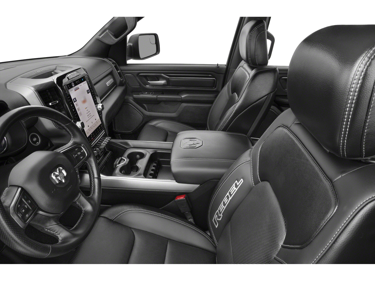 Quick Order Package 27W Rebel, Rebel Level 1 Equipment Group (12 Touchscreen Display, 2nd Row In Floor Storage Bins, 4G LTE Wi-Fi Hot Spot, 9 Amplified Speakers w/Subwoofer, Apple CarPlay, Auto-Dimming Exterior Driver Mirror, Black Exterior Mirrors, Black Premium Power Mirrors, Connected Travel & Traffic Services, Connectivity - US/Canada, Convex Wide-Angle Exterior Mirror Insert, Disassociated Touchscreen Display, Exterior Mirrors Courtesy Lamps, Exterior Mirrors w/Heating Element, Exterior Mirrors w/Supplemental Signals, Foam Bottle Insert (Door Trim Panel), For Details, Visit DriveUconnect.com, For More Info, Call 800-643-2112, Global Telematics Box Module (TBM), Google Android Auto, GPS Antenna Input, GPS Navigation, HD Radio, Heated Front Seats, Heated Steering Wheel, Integrated Center Stack Radio, Integrated Voice Command w/Bluetooth®, Off-Road Information Pages, Power 2-Way Driver Lumbar Adjust, Power 8-Way Driver Seat, Power Adjustable Pedals, Power-Folding Mirrors, Radio: Uconnect 5 Nav w/12.0 Display, Rear Dome w/On/Off Switch Lamp, Rear Power Sliding Window, Rear Window Defroster, SiriusXM Radio Service, SiriusXM w/360L, Sun Visors w/Illuminated Vanity Mirrors, Universal Garage Door Opener, and USB Host Flip), 3.92 Rear Axle Ratio, 4 Way Front Headrests, 4-Wheel Disc Brakes, 48V Belt Starter Generator, 6 Speakers, ABS brakes, Air Conditioning, Alloy wheels, AM/FM radio: SiriusXM with 360L, Apple CarPlay/Android Auto, Auto-dimming Rear-View mirror, Automatic temperature control, Brake assist, Bucket Seats, Cloth/Vinyl Low Back Bucket Seats, Compass, Delay-off headlights, Driver door bin, Dual front impact airbags, Dual front side impact airbags, Electronic Stability Control, Emergency communication system: SiriusXM Guardian, Front anti-roll bar, Front Bucket Seats, Front Center Armrest w/Storage, Front dual zone A/C, Front fog lights, Front reading lights, Front Seat Back Map Pockets, Front wheel independent suspension, Full Length Upgraded Floor Console, Fully automatic headlights, Heated door mirrors, Illuminated entry, Instrument Cluster Theme 2 - Rebel, Leather steering wheel, Low tire pressure warning, Navigation System, Occupant sensing airbag, Outside temperature display, Overhead airbag, Overhead console, Panic alarm, ParkView Rear Back-Up Camera, Passenger door bin, Passenger vanity mirror, Power door mirrors, Power steering, Power windows, Radio data system, Radio: Uconnect 5 Nav w/8.4 Display, Rear 60/40 Folding Seat, Rear anti-roll bar, Rear seat center armrest, Rear step bumper, Remote keyless entry, Speed control, Split folding rear seat, Steering wheel mounted audio controls, Tachometer, Telescoping steering wheel, Tilt steering wheel, Traction control, Trip computer, Variably intermittent wipers, Voltmeter, and Wheels: 18 x 8.0 Painted Mid-Gloss BlacK.