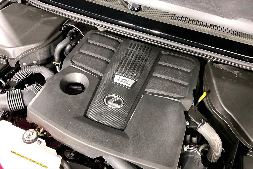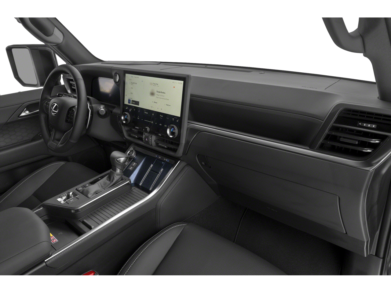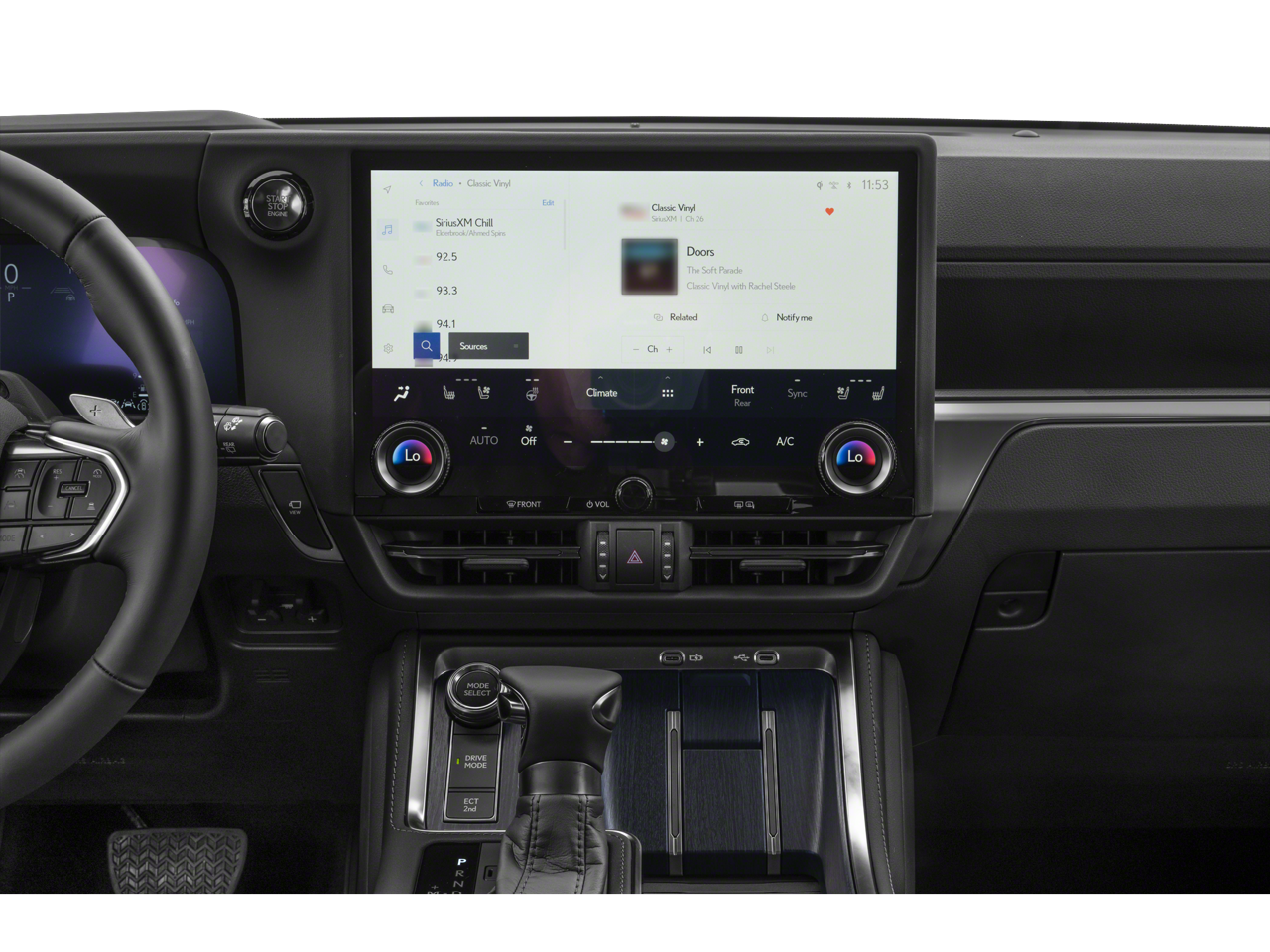 10 Speakers, 3rd row seats: split-bench, 4-Wheel Disc Brakes, ABS brakes, Air Conditioning, AM/FM radio, Apple CarPlay/Android Auto, Auto High-beam Headlights, Automatic temperature control, Brake assist, Electronic Stability Control, Exterior Parking Camera Rear, Four wheel independent suspension, Front Bucket Seats, Front Center Armrest w/Storage, Front fog lights, Knee airbag, Leather steering wheel, Panic alarm, Passenger door bin, Power driver seat, Power Liftgate, Power steering, Power windows, Rear window wiper, Remote keyless entry, Security system, Speed control, Speed-sensing steering, Steering wheel memory, Tachometer, Traction control, Variably intermittent wipers, 3.307 Axle Ratio, Alloy wheels, Anti-whiplash front head restraints, Auto tilt-away steering wheel, Auto-dimming door mirrors, Auto-dimming Rear-View mirror, Bumpers: body-color, Delay-off headlights, Driver door bin, Driver vanity mirror, Dual front impact airbags, Dual front side impact airbags, Emergency communication system: Safety Connect (up to 10-year trial subscription included), Front anti-roll bar, Front dual zone A/C, Front reading lights, Fully automatic headlights, Garage door transmitter: HomeLink, Genuine wood console insert, Heated & Ventilated Front Bucket Seats, Heated door mirrors, Heated front seats, Heated rear seats, Heated steering wheel, Illuminated entry, Leather Shift Knob, Low tire pressure warning, Memory seat, Navigation system: Drive Connect Cloud Navigation (3-year trial subscription included), Occupant sensing airbag, Overhead airbag, Passenger vanity mirror, Power door mirrors, Power moonroof, Power passenger seat, Radio: Lexus Interface w/14 Touchscreen, Rear air conditioning, Rear anti-roll bar, Rear reading lights, Rear seat center armrest, Rear side impact airbag, Rear window defroster, Semi-Aniline Leather Seat Trim, Split folding rear seat, Spoiler, Steering wheel mounted audio controls, Telescoping steering wheel, Tilt steering wheel, Trip computer, Turn signal indicator mirrors, Ventilated front seats, and Wheels: 22 x 7.5J Aluminum Alloy.