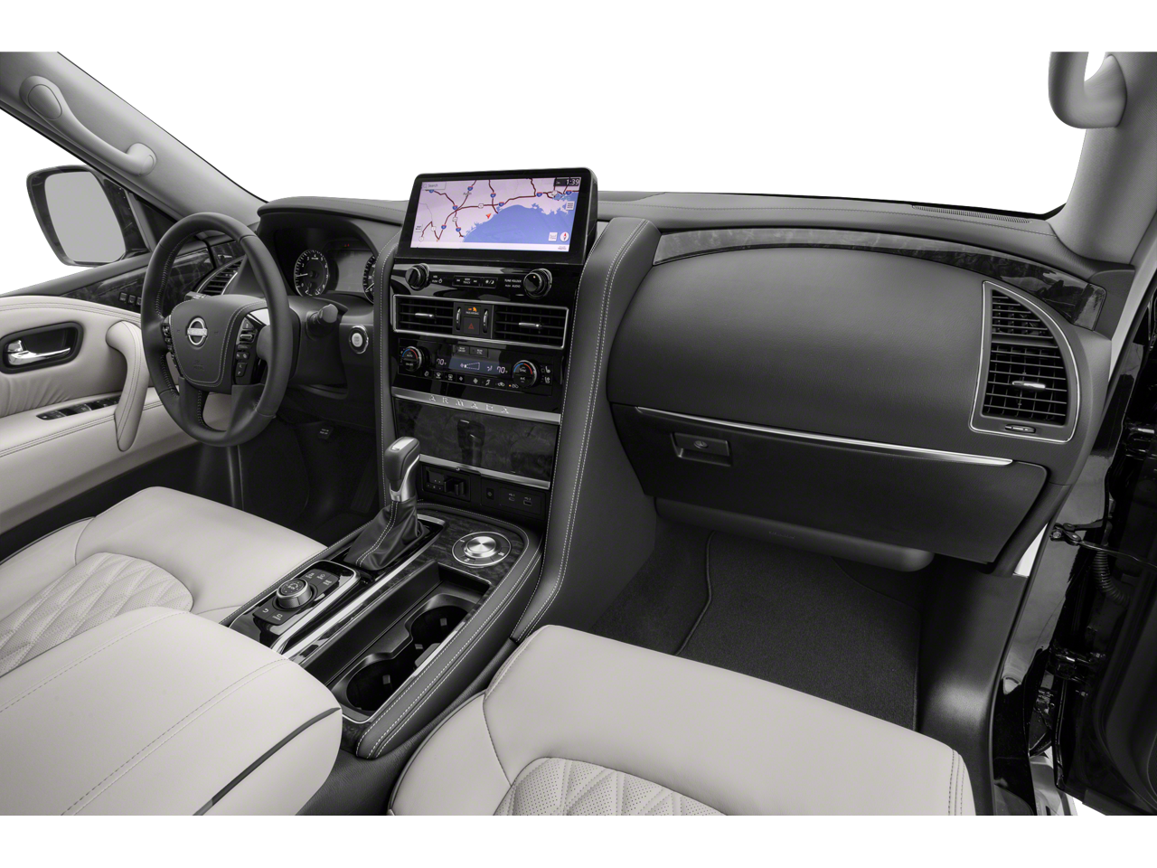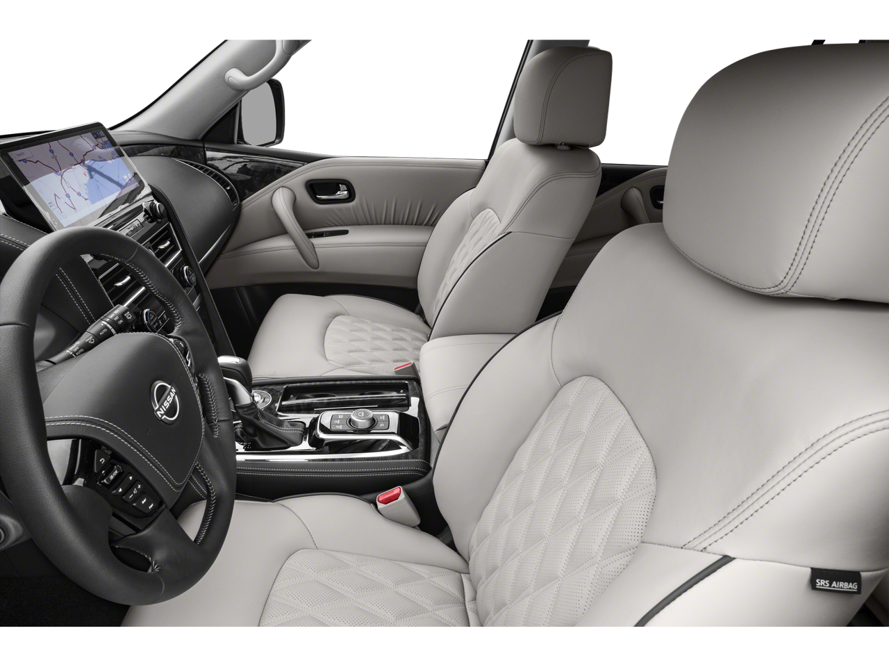 Step inside the Armada Platinum and you'll be greeted by a spacious and luxurious cabin that's been meticulously crafted to cater to your every need. The quilted leather seating surfaces, heated and ventilated front seats, and heated rear seats ensure unparalleled comfort, while the 13-speaker premium audio system provides an immersive listening experience.