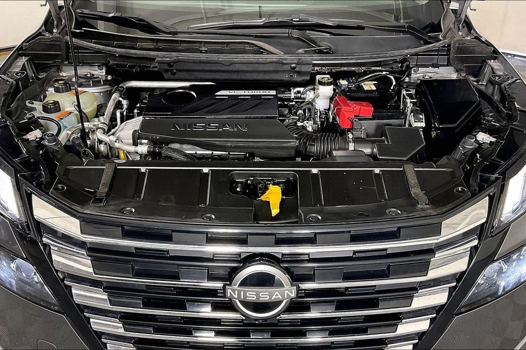 SL Premium Package (Memory Driver Seat & Outside Mirrors, Motion-Activated Power Liftgate, Panoramic Moonroof, Rear Door Sunshades, Rear Personal Lights, Reverse Tilt-Down Outside Mirrors, and Tri-Zone Automatic Temperature Control), 4-Wheel Disc Brakes, 6 Speakers, ABS brakes, Air Conditioning, AM/FM radio: SiriusXM w/360L, Auto High-beam Headlights, Brake assist, Electronic Stability Control, Four wheel independent suspension, Heated front seats, Low tire pressure warning, Panic alarm, Passenger door bin, Power driver seat, Power Liftgate, Power steering, Power windows, Security system, Speed control, Traction control, Variably intermittent wipers, 5.676 Axle Ratio, Alloy wheels, Auto-dimming Rear-View mirror, Automatic temperature control, Bumpers: body-color, Chrome Rear Bumper Protector, Delay-off headlights, Driver door bin, Driver vanity mirror, Dual front impact airbags, Dual front side impact airbags, Emergency communication system: NissanConnect Services, First Aid Kit, Floor Mats w/2-Piece Cargo Area Protector, Frameless Rearview Mirror w/Universal Remote, Front anti-roll bar, Front Bucket Seats, Front Center Armrest, Front dual zone A/C, Front reading lights, Fully automatic headlights, Heated door mirrors, Heated Front Bucket Seats, Heated steering wheel, Illuminated entry, Illuminated Kick Plates, Knee airbag, Leather steering wheel, Leather-Appointed Seat Trim, Navigation system: NissanConnect with Navigation and Services, NissanConnect featuring Apple CarPlay and Android Auto, Occupant sensing airbag, Outside temperature display, Overhead airbag, Overhead console, Passenger vanity mirror, Power door mirrors, Power passenger seat, Radio data system, Radio: AM/FM NissanConnect w/Navigation, Rear anti-roll bar, Rear seat center armrest, Rear side impact airbag, Rear window defroster, Rear window wiper, Remote keyless entry, Speed-Sensitive Wipers, Splash Guards (Set of 4 - Black), Split folding rear seat, Spoiler, Steering wheel mounted audio controls, Tachometer, Telescoping steering wheel, Tilt steering wheel, Trip computer, Turn signal indicator mirrors, and Wheels: 19 Dark Painted Machine Finished Alloy.