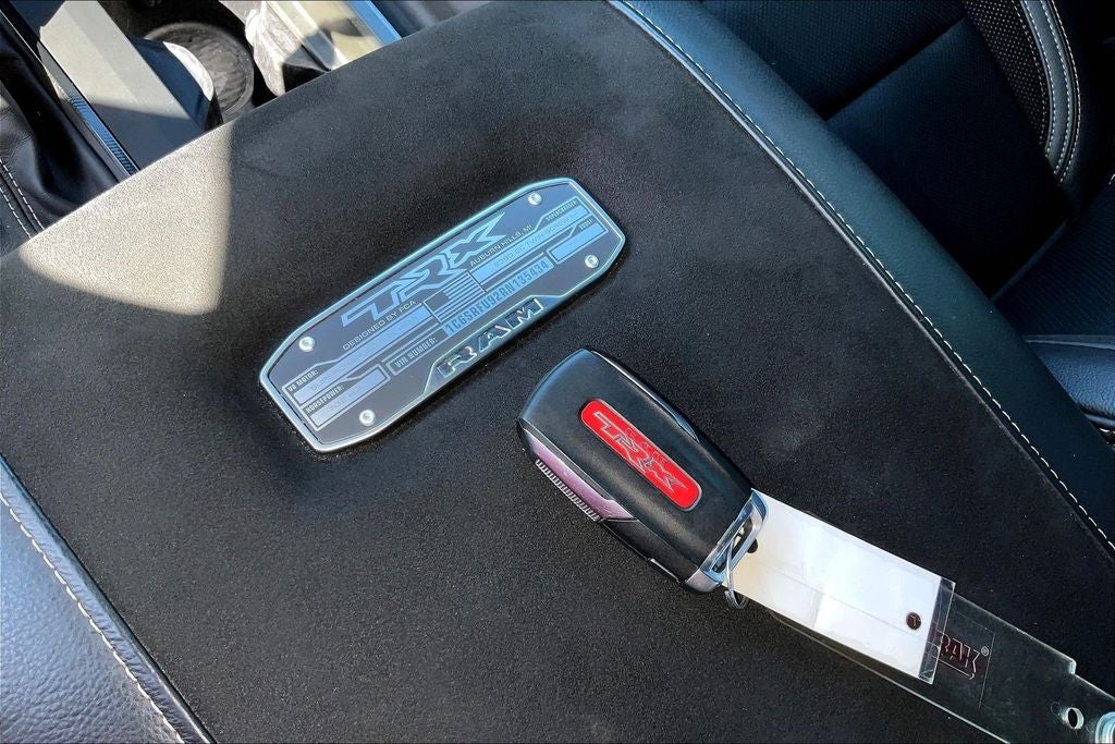 The TRX Level 2 Equipment Group takes this truck to the next level, offering a wealth of premium features. Enjoy the convenience of a Surround View Camera System, Blind Spot and Cross Path Detection, and a Heads-Up Display. Stay connected with the Uconnect 5 Nav system and the stunning 12.0 touchscreen display.