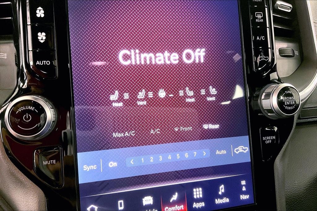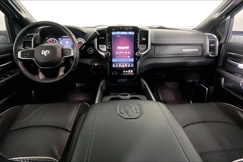 This Laramie trim level offers a wealth of premium features, including Alexa Built-In, GPS Navigation, Blind Spot & Cross Path Detection, and a stunning 12-inch touchscreen display. The leather-trimmed bucket seats provide exceptional comfort, while the power-adjustable pedals and mirrors ensure a personalized driving experience.