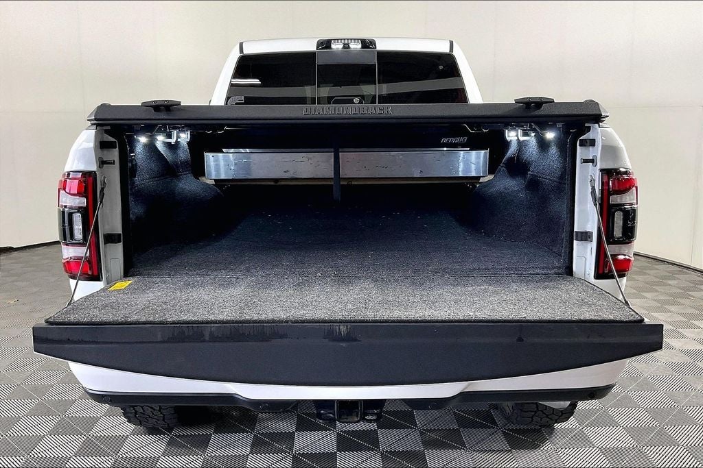 The exterior of this Ram 2500 Laramie is equally impressive, with the Night Edition package adding a bold, aggressive stance. The black accents and 20-inch black painted aluminum wheels create a striking, premium appearance that is sure to turn heads.