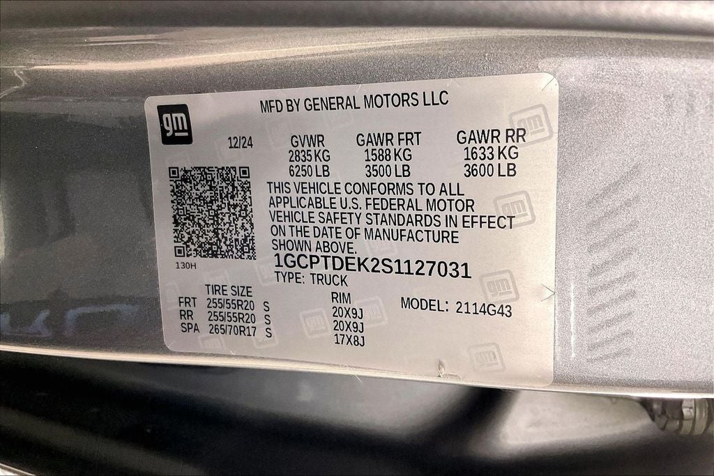 Preferred Equipment Group 4Z7 (Automatic Emergency Braking, Forward Collision Alert, Lane Keep Assist w/Lane Departure Warning, Chevy Safety Assist, Following Distance Indicator, Front Pedestrian & Bicyclist Braking, and IntelliBeam Automatic High Beam On/Off), Z71 Convenience Package III (Driver & Front Passenger Ventilated Seats, Driver Memory Settings, Driver Seatback Map Pocket, Heated Steering Wheel, Perforated Leather-Appointed Seat Trim, and Rear Center Armrest), 4-Wheel Disc Brakes, 6 Speakers, 6-Speaker Audio System Feature, 8-Way Power Driver Seat Adjuster, ABS brakes, Air Conditioning, AM/FM radio: SiriusXM, Apple CarPlay/Android Auto, Auto High-beam Headlights, Automatic temperature control, Brake assist, Electronic Stability Control, Front Bucket Seats, Front Center Armrest, Panic alarm, Power steering, Power windows, Remote keyless entry, Speed control, Speed-sensing steering, Traction control, Variably intermittent wipers, Wireless Phone Projection, 1st & 2nd Row All-Weather Floor Liner (LPO), 3.42 Rear Axle Ratio, 4-Way Manual Passenger Seat Adjuster, Alloy wheels, Auto-dimming Rear-View mirror, Black Spray-On Bedliner w/Chevrolet Logo, Bumpers: body-color, Cloth/Evotex Seat Trim, Compass, Delay-off headlights, Driver door bin, Driver vanity mirror, Dual front impact airbags, Dual front side impact airbags, Emergency communication system: OnStar, Front anti-roll bar, Front dual zone A/C, Front fog lights, Front Passenger Seatback Map Pocket, Front reading lights, Front wheel independent suspension, Heated door mirrors, Heated Driver & Front Passenger Seats, Heated front seats, Illuminated entry, Low tire pressure warning, Navigation System, Occupant sensing airbag, Outside temperature display, Overhead airbag, Overhead console, Passenger door bin, Passenger vanity mirror, Power door mirrors, Power Driver Lumbar Control Seat Adjuster, Power driver seat, Radio data system, Radio: 11.3 Diagonal Advanced Color LCD Display, Rear reading lights, Rear step bumper, Rear window defroster, Security system, SiriusXM Trial Subscription, Split folding rear seat, Steering Wheel Mounted Audio Controls, Steering wheel mounted audio controls, Tachometer, Telescoping steering wheel, Tilt steering wheel, Trip computer, Wheels: 18 x 8.5 Android Dark Full Gloss Aluminum, and Wheels: 20 x 9 High Gloss Black Aluminum.