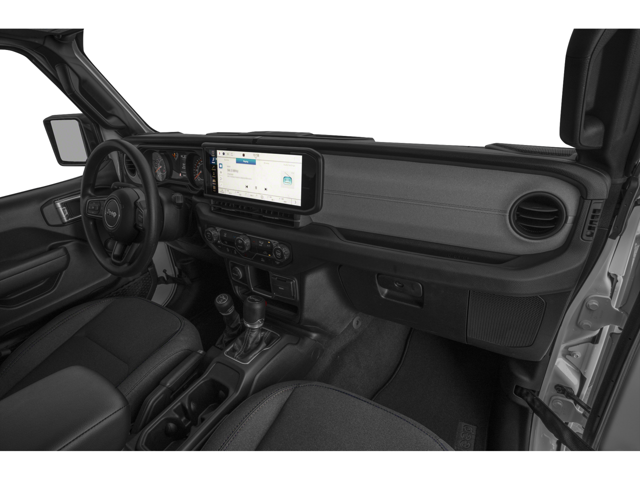 Quick Order Package 22B Sport, 4-Wheel Disc Brakes, 8 Speakers, ABS brakes, Air Conditioning, AM/FM radio: SiriusXM, Apple CarPlay/Android Auto, Brake assist, Delay-off headlights, Electronic Stability Control, Front fog lights, Low tire pressure warning, Panic alarm, ParkView Rear Back-Up Camera, Power steering, Power windows, Radio data system, Remote keyless entry, Speed control, Traction control, Variably intermittent wipers, 110 MPH Vehicle Max Speed Calibration, 3.45 Overall Top Gear Ratio, Aux Battery, Black 3-Piece Hard Top, Cloth Low-Back Bucket Seats, Compass, Driver door bin, Driver vanity mirror, Dual front impact airbags, Dual front side impact airbags, Freedom Panel Storage Bag, Front anti-roll bar, Front Bucket Seats, Front Center Armrest w/Storage, Front reading lights, Illuminated entry, Integrated roll-over protection, MOPAR All-Weather Floor Mats, Non-Lock Fuel Cap w/o Discriminator, Normal Duty Suspension, Occupant sensing airbag, Outside temperature display, Overhead airbag, Passenger door bin, Passenger vanity mirror, Radio: Uconnect 5 w/12.3 Display, Rear anti-roll bar, Rear reading lights, Rear Window Defroster, Rear Window Wiper/Washer, Steering wheel mounted audio controls, Stop-Start Dual Battery System, Tachometer, Telescoping steering wheel, Tilt steering wheel, Trip computer, and Wheels: 17 x 7.5 Black Steel Styled.