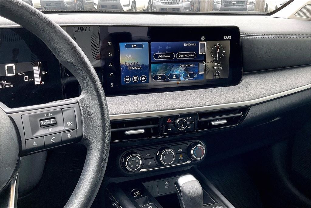 - Radio: AM/FM Audio System -inc: 12.3 color touchscreen display w/4 speakers, Bluetooth® hands-free phone system, streaming audio via Bluetooth®, audio and Bluetooth® steering wheel switches, USB C (data and charge) (front), NissanConnect featuring wireless Apple CarPlay, wireless Android Auto, Siri eyes free, SiriusXM satellite radio w/advanced auto features and hands-free text messaging assistant