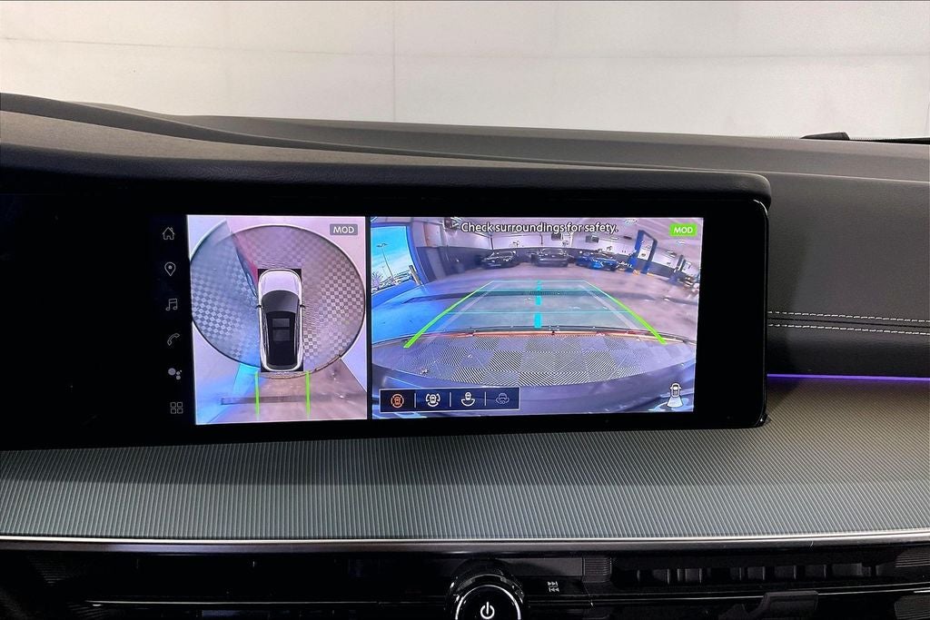 10 Speakers, 20 Alloy Wheels, 4-Wheel Disc Brakes, ABS brakes, Air Conditioning, Alloy wheels, AM/FM radio: SiriusXM w/360L, Auto High-beam Headlights, Auto-dimming Rear-View mirror, Automatic temperature control, Brake assist, Bumpers: body-color, Child-Seat-Sensing Airbag, Compass, Delay-off headlights, Driver door bin, Driver vanity mirror, Dual front impact airbags, Dual front side impact airbags, Electronic Stability Control, Emergency communication system: NissanConnect Services, Four wheel independent suspension, Front anti-roll bar, Front Bucket Seats, Front Center Armrest, Front dual zone A/C, Front reading lights, Fully automatic headlights, Garage door transmitter: myQ Connected Garage, Heated door mirrors, Heated Front Bucket Seats, Heated front seats, Heated steering wheel, Illuminated entry, Knee airbag, Low tire pressure warning, Memory seat, Navigation system: NissanConnect with Navigation and Services, Occupant sensing airbag, Outside temperature display, Overhead airbag, Overhead console, Panic alarm, Passenger door bin, Passenger vanity mirror, Power door mirrors, Power driver seat, Power Liftgate, Power moonroof: Panoramic, Power passenger seat, Power steering, Power windows, PVC (Leatherette) Seat Trim, Radio data system, Radio: NissanConnect w/Hybrid Radio, Rear anti-roll bar, Rear reading lights, Rear seat center armrest, Rear side impact airbag, Rear window defroster, Rear window wiper, Remote keyless entry, Security system, Speed control, Speed-Sensitive Wipers, Split folding rear seat, Spoiler, Steering wheel mounted audio controls, Tachometer, Telescoping steering wheel, Tilt steering wheel, Traction control, Trip computer, Turn signal indicator mirrors, Variably intermittent wipers, and Wireless Apple CarPlay/Wireless Android Auto.