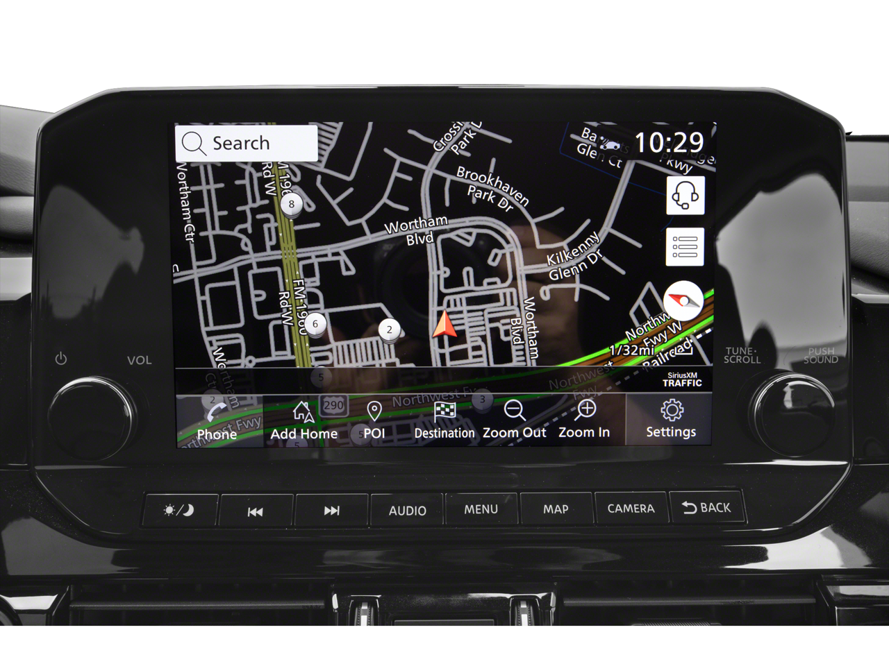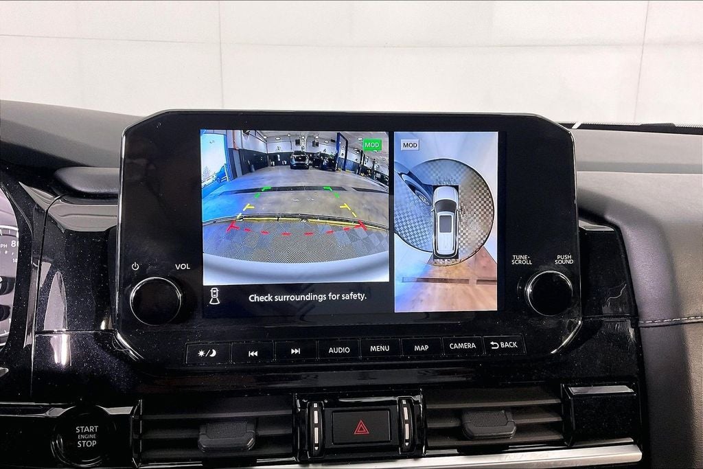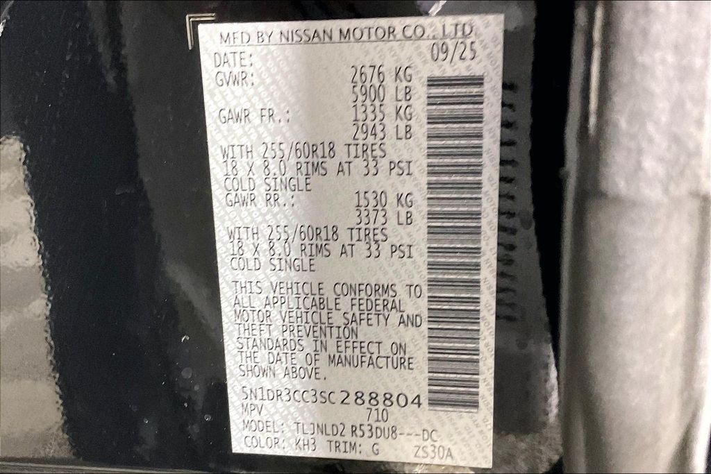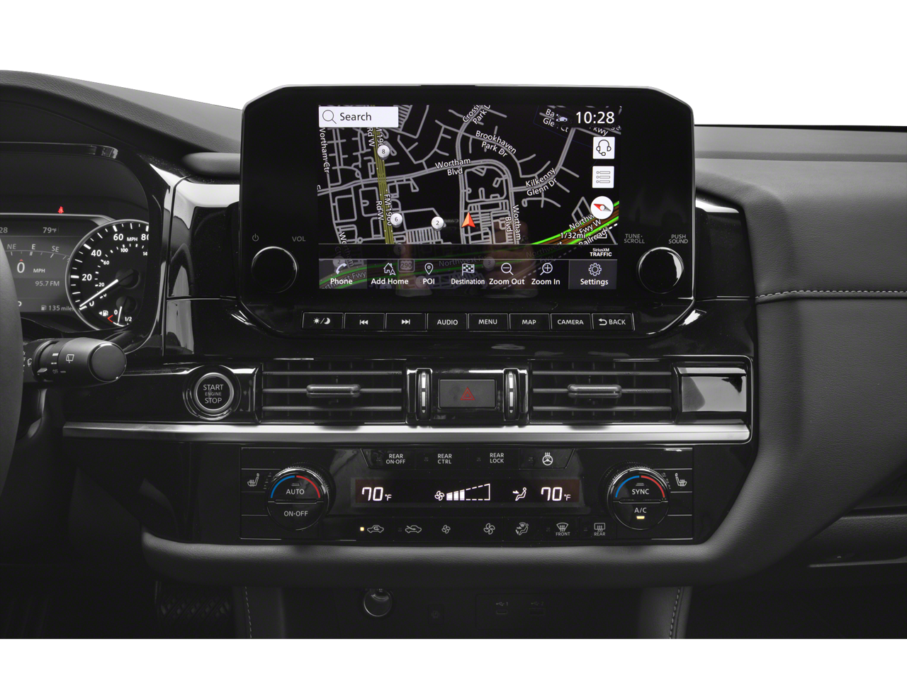 Black Appearance Package (Black Grille and Black Liftgate Emblems), 3rd row seats: bench, 4-Wheel Disc Brakes, 6 Speakers, ABS brakes, Air Conditioning, Alloy wheels, AM/FM radio: SiriusXM, Auto High-beam Headlights, Auto-dimming Rear-View mirror, Automatic temperature control, Bench Seat Carpeted Floor Mats (set of 4), Brake assist, Bumpers: body-color, Cross Bars, Delay-off headlights, Driver door bin, Driver vanity mirror, Dual front impact airbags, Dual front side impact airbags, Electronic Stability Control, Emergency communication system, Exterior Parking Camera Rear, Four wheel independent suspension, Front anti-roll bar, Front Bucket Seats, Front Center Armrest, Front dual zone A/C, Front reading lights, Fully automatic headlights, Garage door transmitter: HomeLink, Heated door mirrors, Heated Front Bucket Seats, Heated front seats, Heated steering wheel, Illuminated entry, Knee airbag, Leather steering wheel, Leather-Appointed Seating Surfaces, Low tire pressure warning, Navigation system: NissanConnect with Navigation and Services, NissanConnect featuring Apple CarPlay and Android Auto, NissanConnect with Navigation and Services, Occupant sensing airbag, Outside temperature display, Overhead airbag, Overhead console, Panic alarm, Passenger door bin, Passenger vanity mirror, Power door mirrors, Power driver seat, Power Liftgate, Power passenger seat, Power steering, Power windows, Radio data system, Radio: AM/FM Audio System, Rear air conditioning, Rear anti-roll bar, Rear reading lights, Rear seat center armrest, Rear side impact airbag, Rear window defroster, Rear window wiper, Reclining 3rd row seat, Remote keyless entry, Security system, Speed control, Speed-sensing steering, Split folding rear seat, Spoiler, Steering wheel mounted audio controls, Tachometer, Telescoping steering wheel, Tilt steering wheel, Traction control, Trip computer, Turn signal indicator mirrors, Variably intermittent wipers, and Wheels: 18 x 8J Machined Alloy.