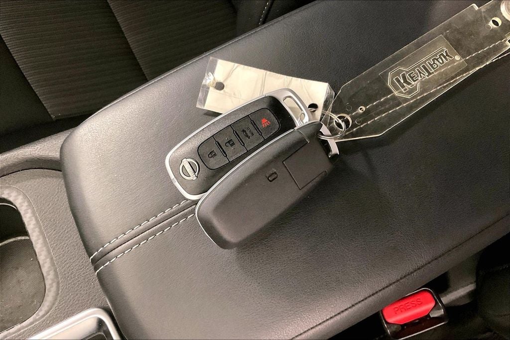 16 Alloy Wheels, 4-Wheel Disc Brakes, 8 Speakers, ABS brakes, Air Conditioning, Alloy wheels, AM/FM radio: SiriusXM, Auto High-beam Headlights, Blind Spot Warning, Body Colored Splash Guards (4-Piece), Brake assist, Bumpers: body-color, Clear Rear Bumper Protector, Delay-off headlights, Door Sill Plates, Driver door bin, Driver vanity mirror, Dual front impact airbags, Dual front side impact airbags, Electronic Stability Control, Four wheel independent suspension, Front anti-roll bar, Front Bucket Seats, Front Center Armrest, Front reading lights, Fully automatic headlights, Illuminated entry, Knee airbag, Low tire pressure warning, NissanConnect featuring Apple CarPlay and Android Auto, Occupant sensing airbag, Outside temperature display, Overhead airbag, Overhead console, Panic alarm, Passenger door bin, Passenger vanity mirror, Power door mirrors, Power steering, Power windows, Radio data system, Rear anti-roll bar, Rear Parking Sensors, Rear side impact airbag, Rear window defroster, Remote keyless entry, Security system, Speed control, Speed-sensing steering, Split folding rear seat, Steering wheel mounted audio controls, Tachometer, Telescoping steering wheel, Tilt steering wheel, Traction control, Trip computer, Upgraded Cloth Seat Trim, and Variably intermittent wipers.